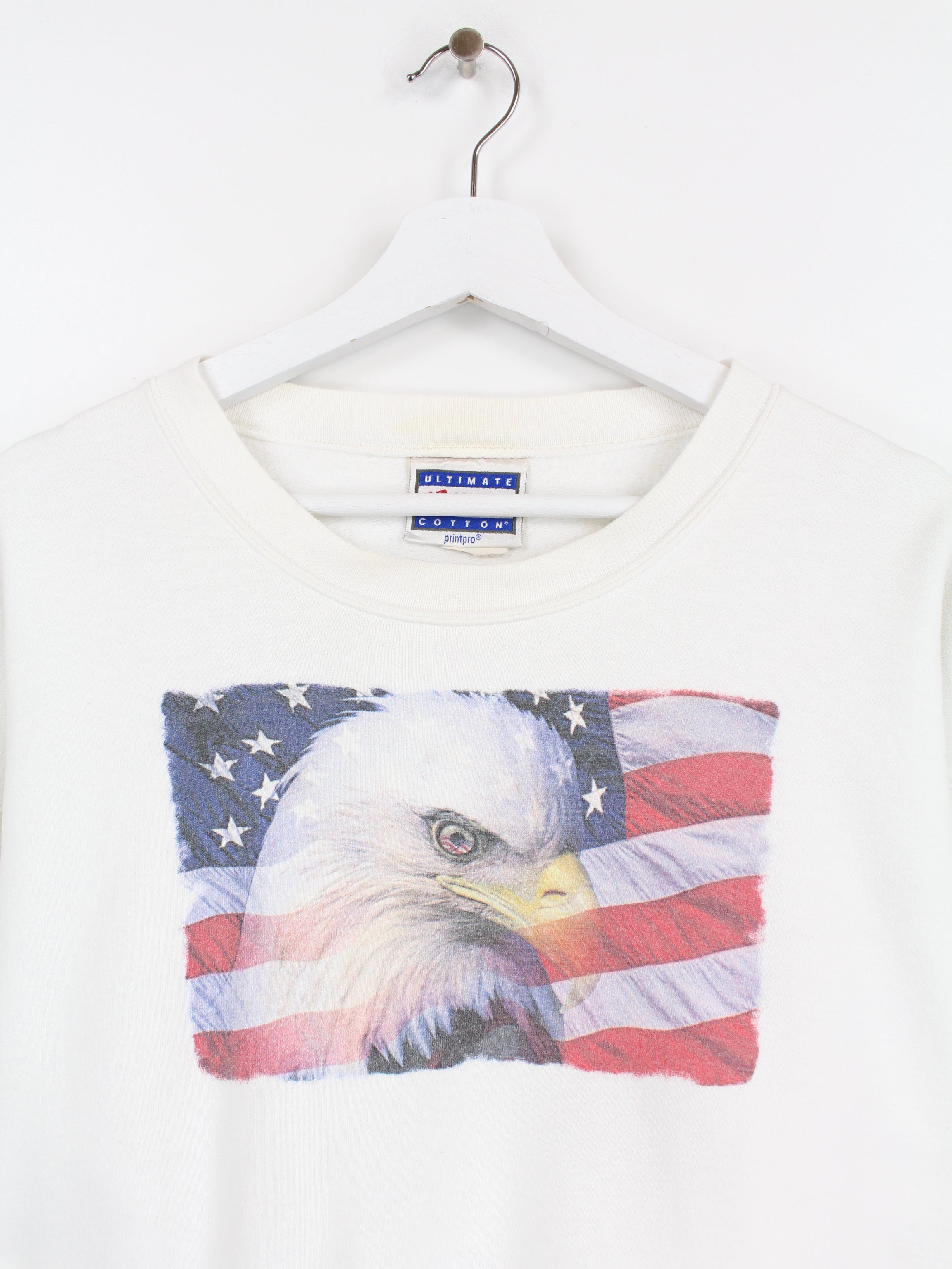 Weißer Vintage Hanes USA Print Sweater.