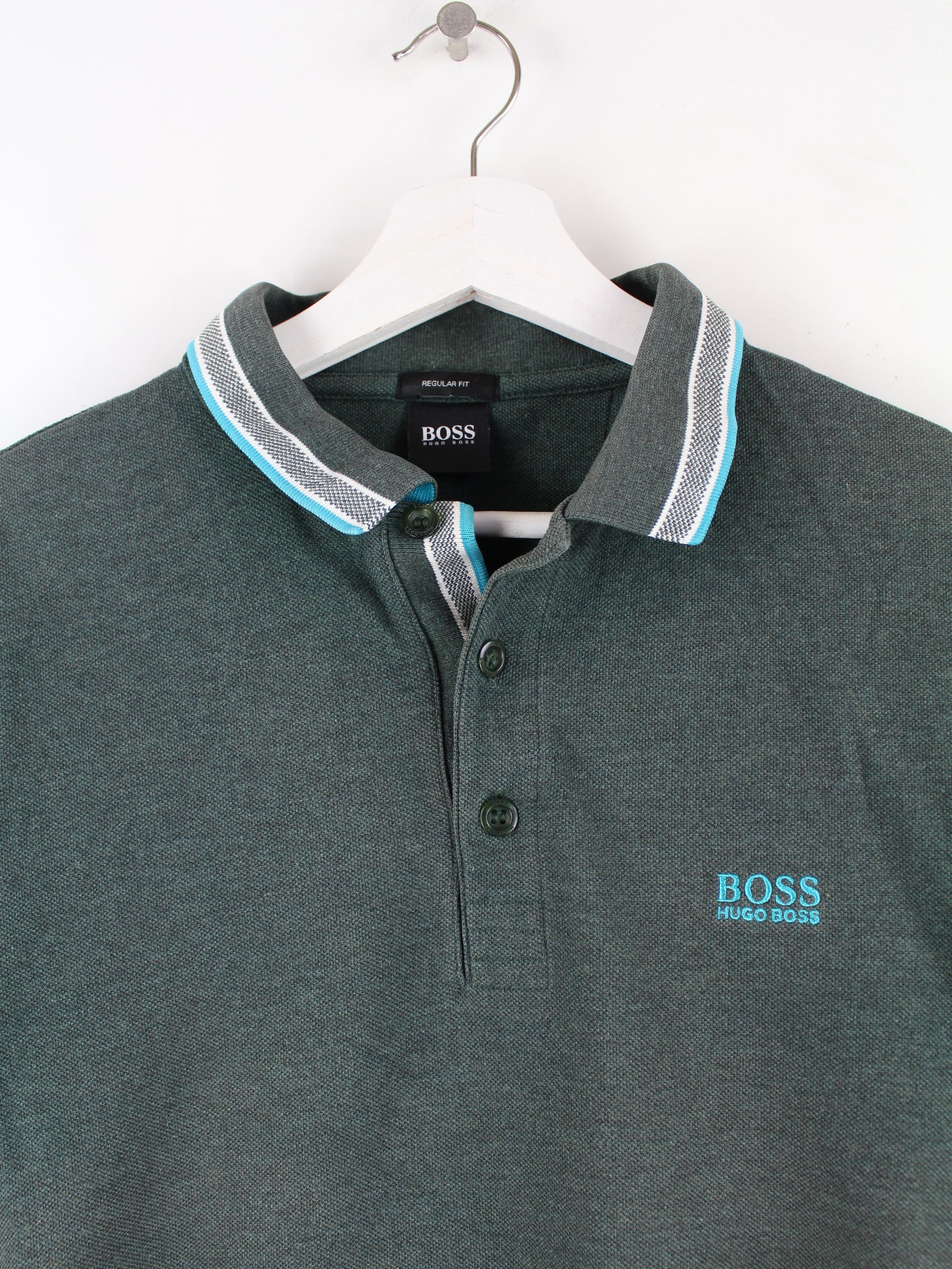 Poloshirt der Brand Hugo Boss in Größe M. Es ist aus Baumwolle und in Grün im Angebot.