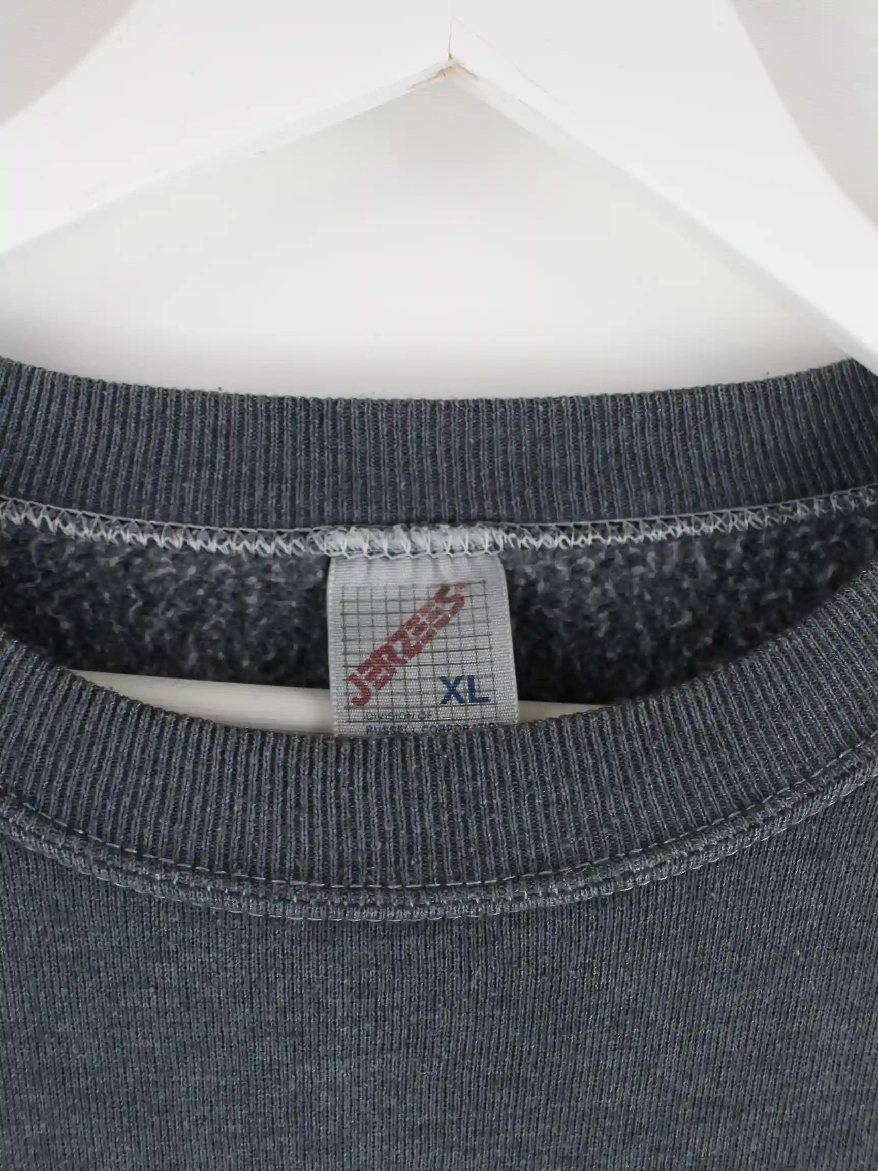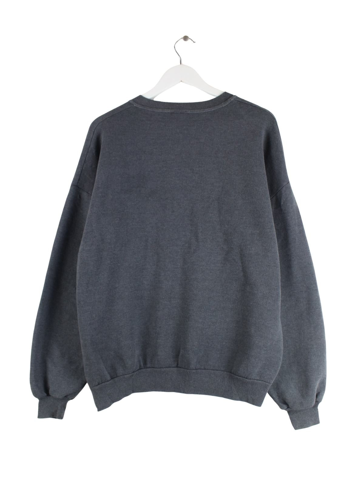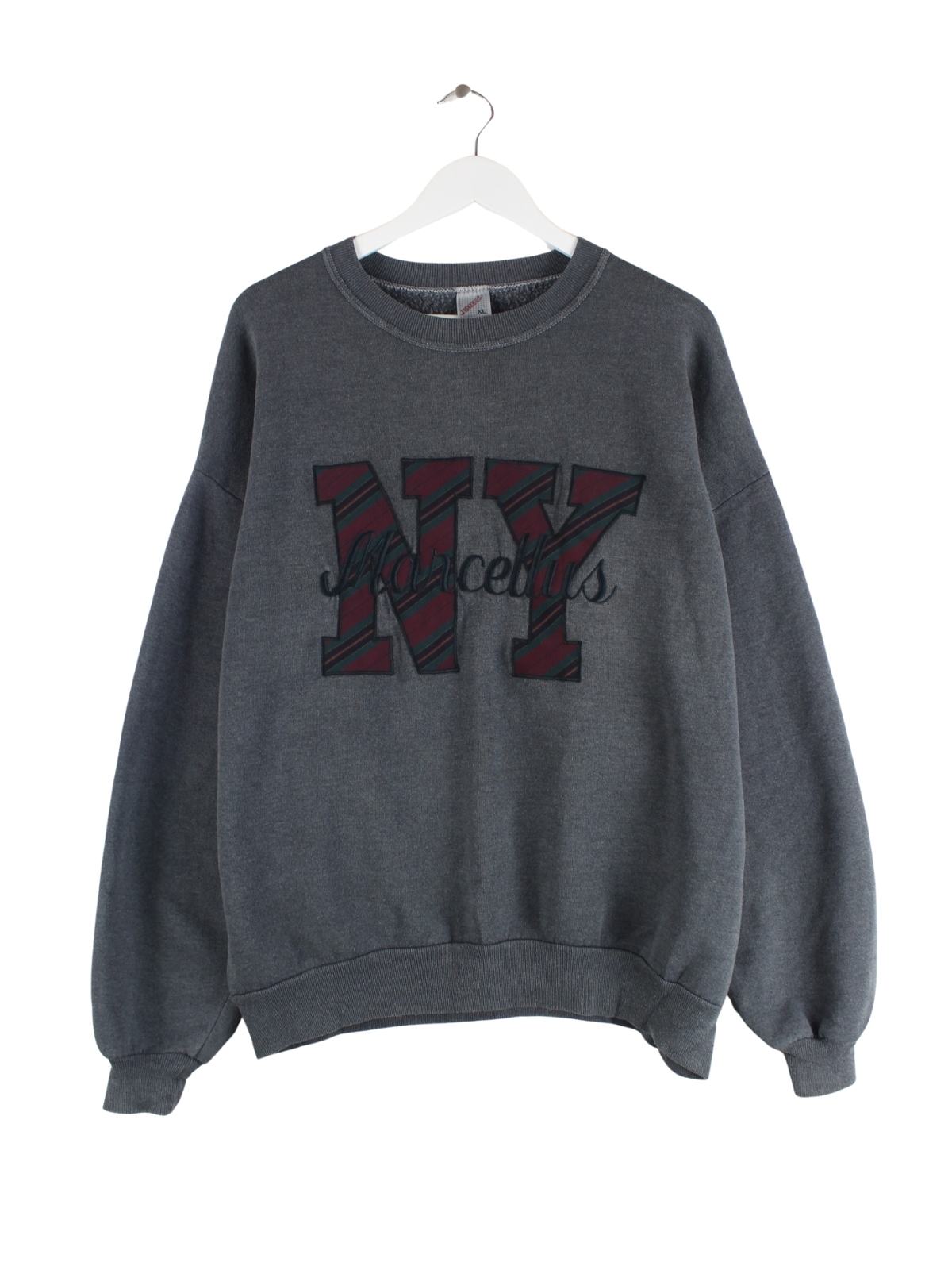 Grauer Sweater vom Brand Jerzees aus den 90'ern in Größe XL. Er ist aus einer Baumwollmischung gefertigt und in gutem Zustand zu bekommen. Mit seltenem Marcellus Print.