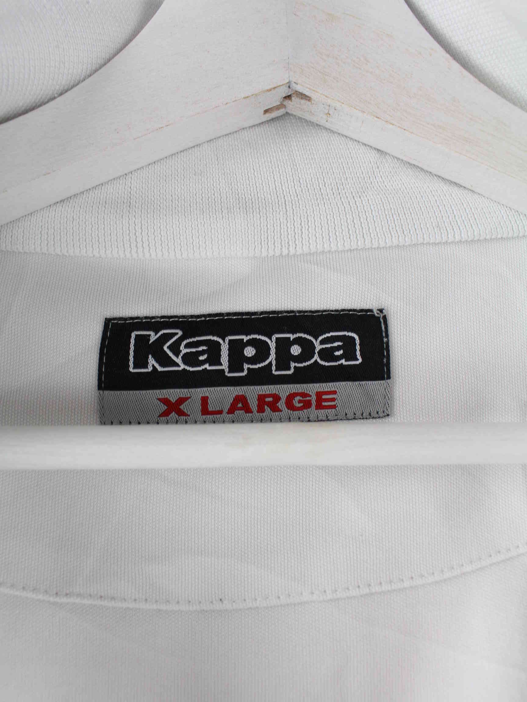 Weiße Trainingsjacke mit Stick des Labels Kappa aus Anfang der 2000'er in Größe L. Sie ist aus Synthetik und in gutem Zustand lieferbar.