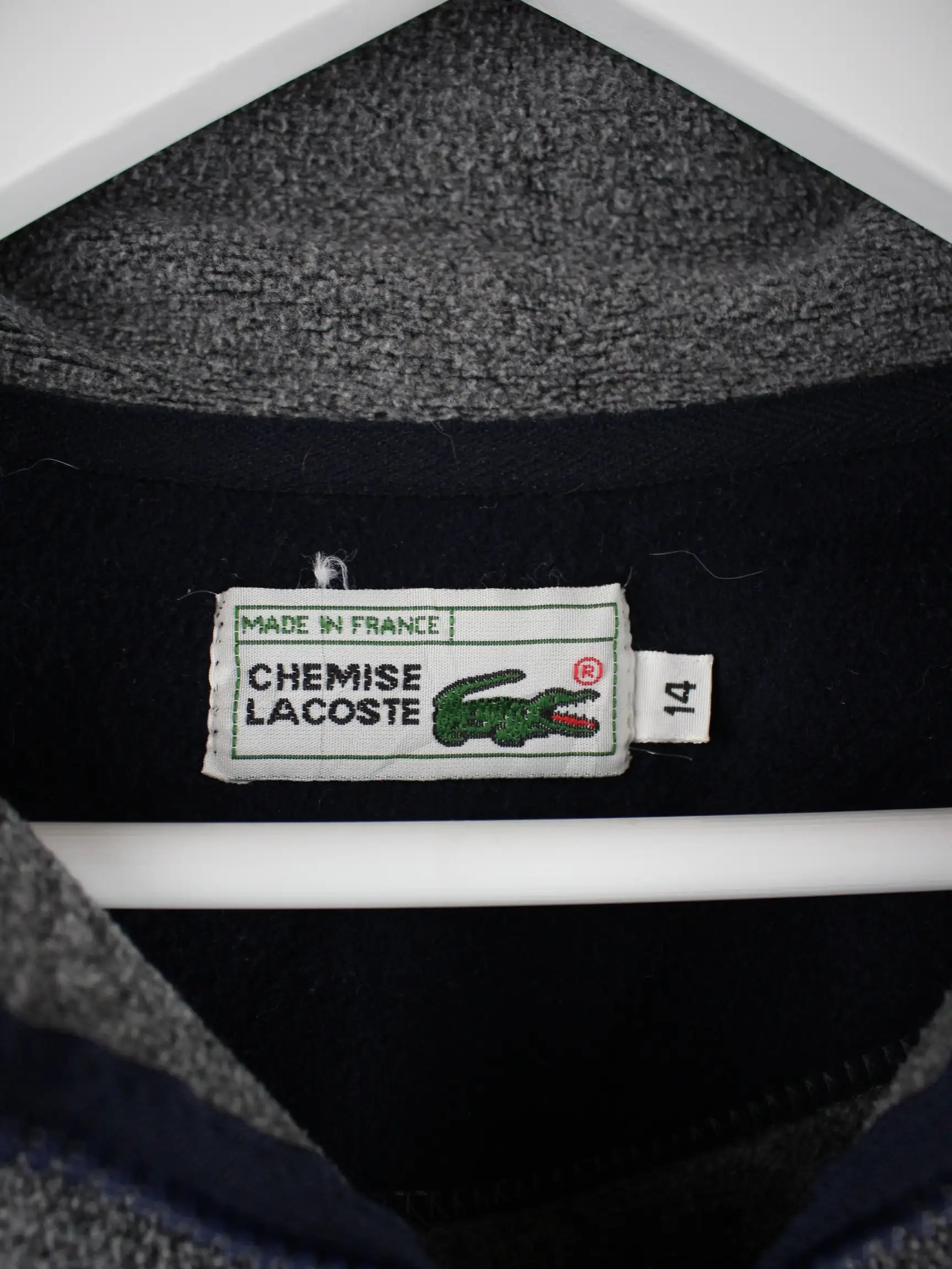 Leichte Jacke vom Brand Lacoste mit kurzem Reißverschluß in Größe S aus den 90'ern. Sie ist aus angenehmem Fleece angefertigt und in Grau im Angebot.