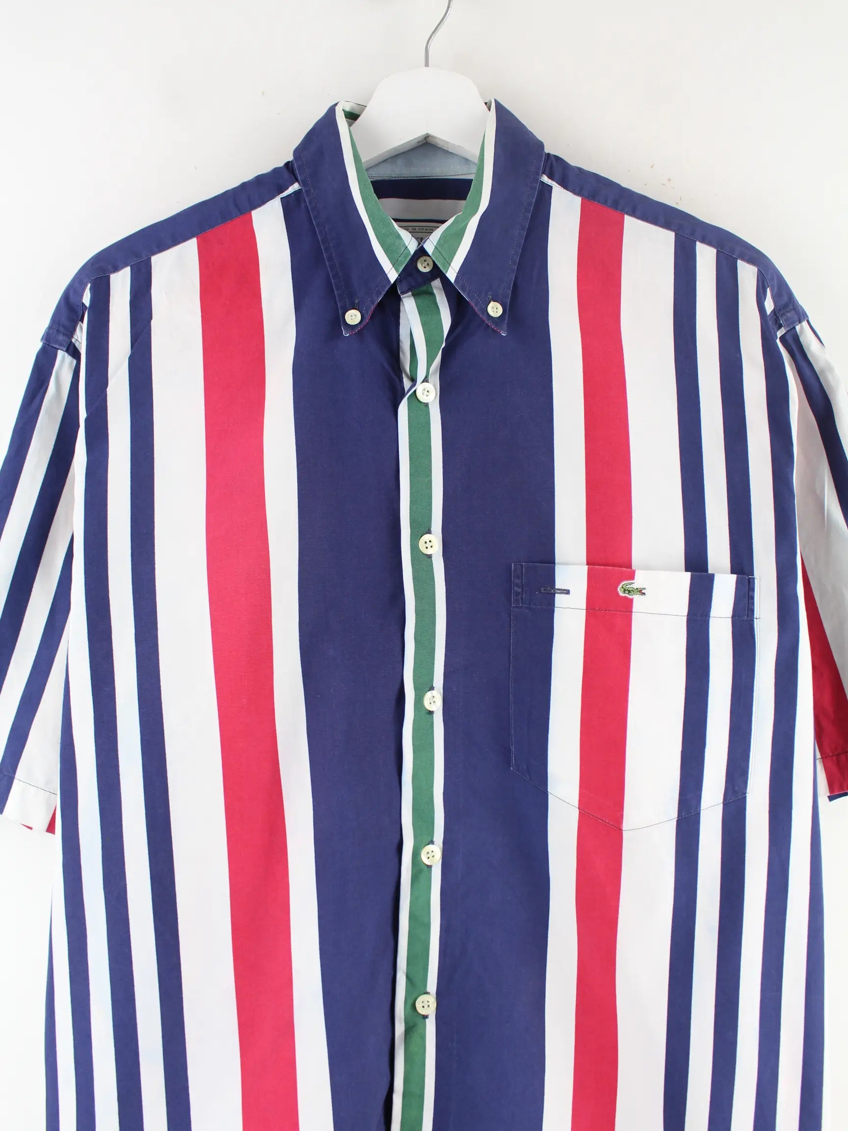 Lacoste 90s Vintage Striped Kurzarm Hemd Blau M