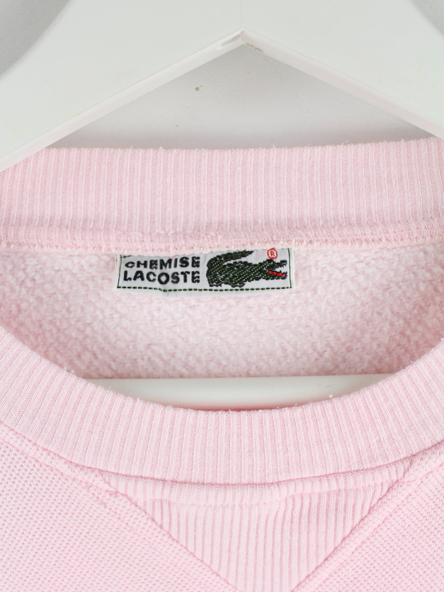 Sweater vom Brand Lacoste mit Stickereien in Größe M aus den 90'ern. Er ist aus einer Baumwollmischung produziert und in Rosa im Bestand.