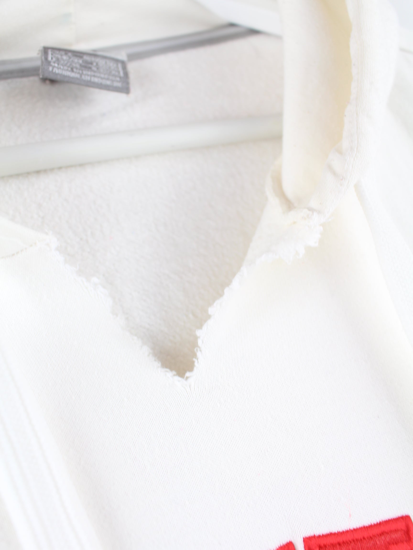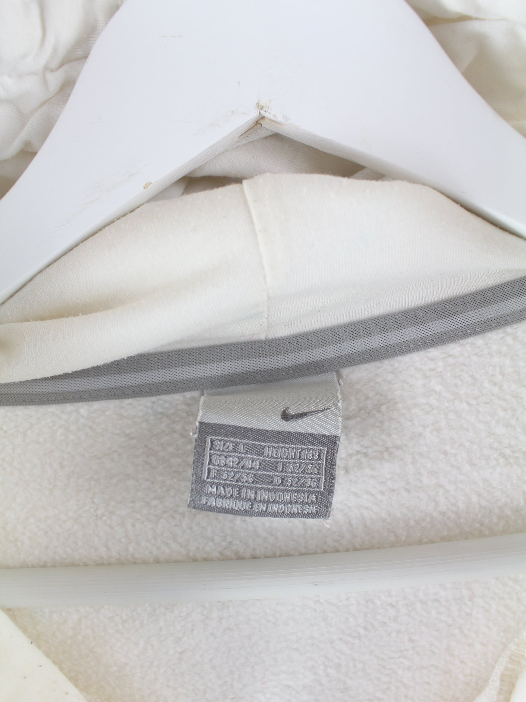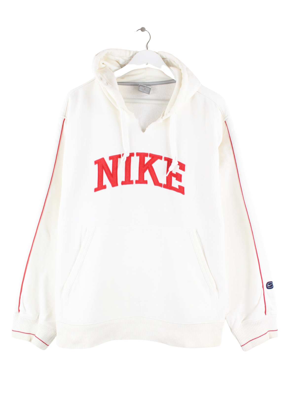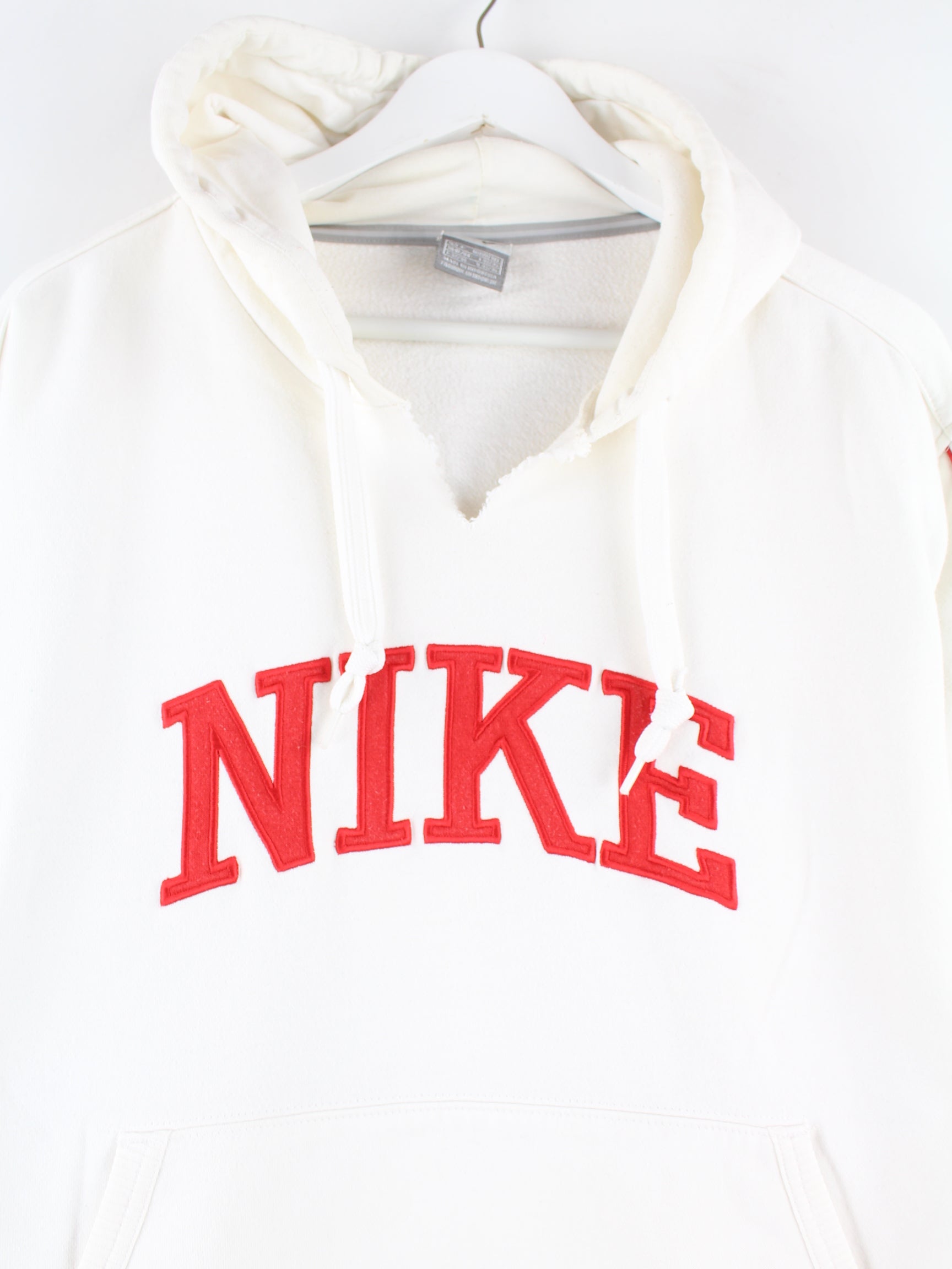 Weißer Hoodie mit gestickten Motiven der Brand Nike in Größe L. Er ist aus einer Baumwollmischung angefertigt und in gutem Zustand im Angebot.