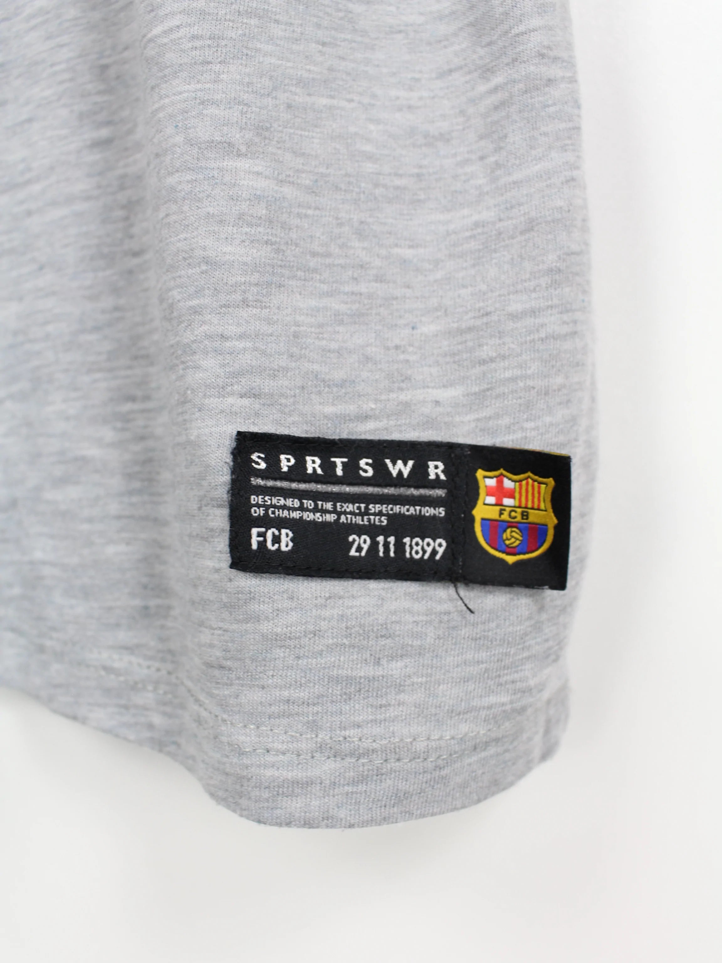 Graues FC Barcelona Sport T-Shirt mit großem Aufdruck.