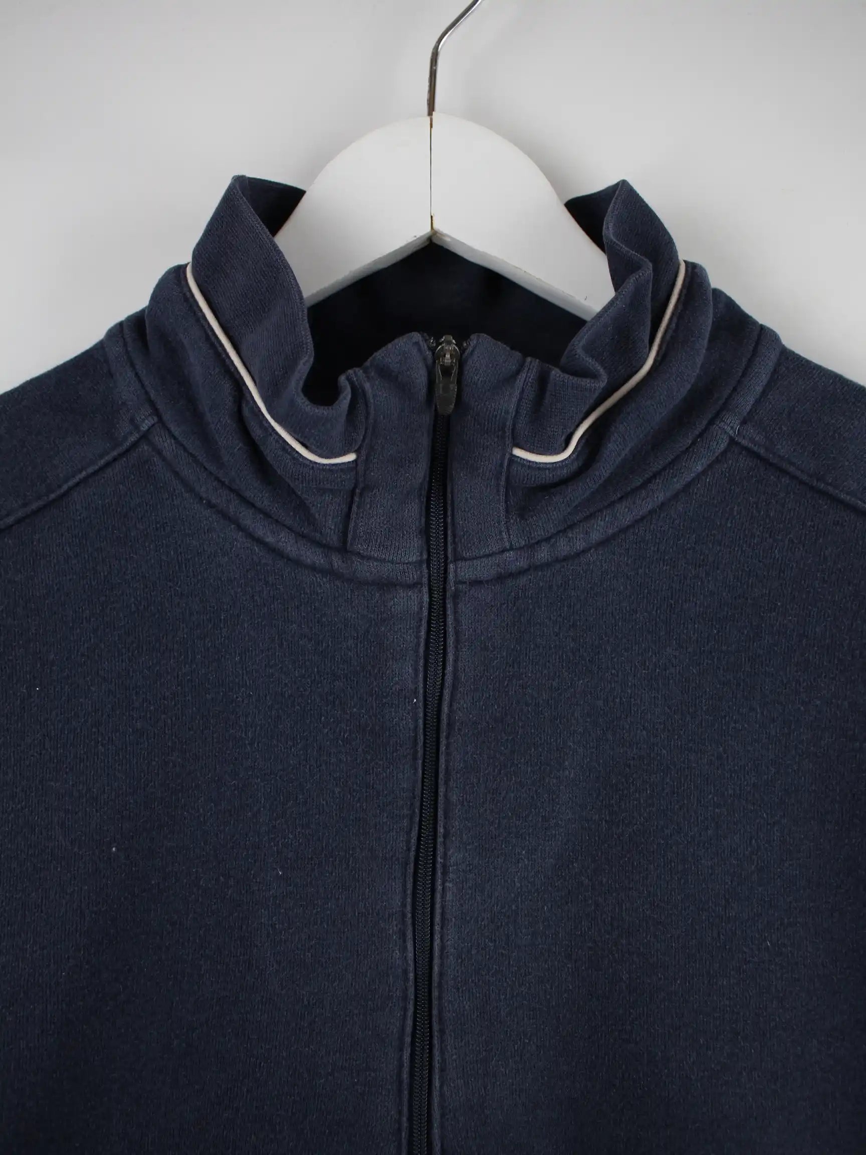 Blauer Sweater mit half Zip von Nike in Größe XL. Er ist aus einer Baumwollmischung produziert und in gutem Zustand auf Lager.