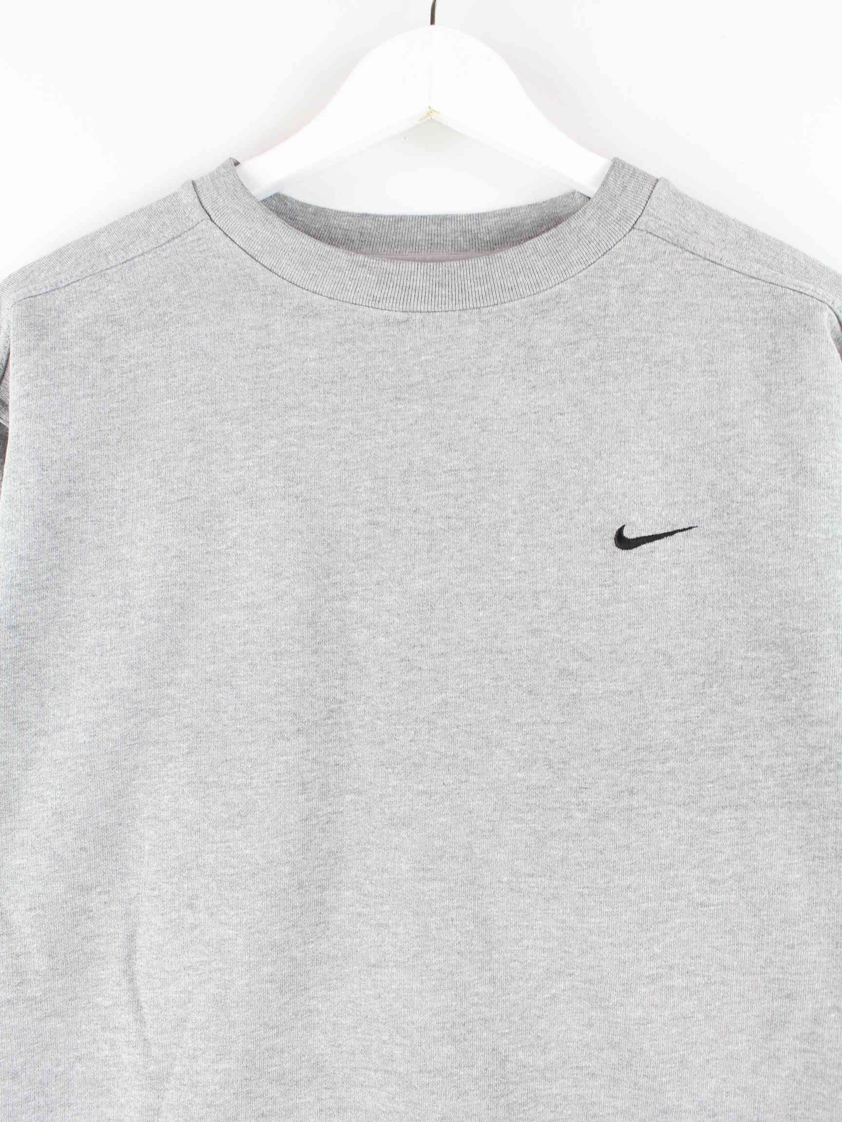 Sweater vom Brand Nike in Größe M aus Anfang der 2000'er. Er ist aus einer Baumwollmischung gefertigt und in Grau im Angebot.