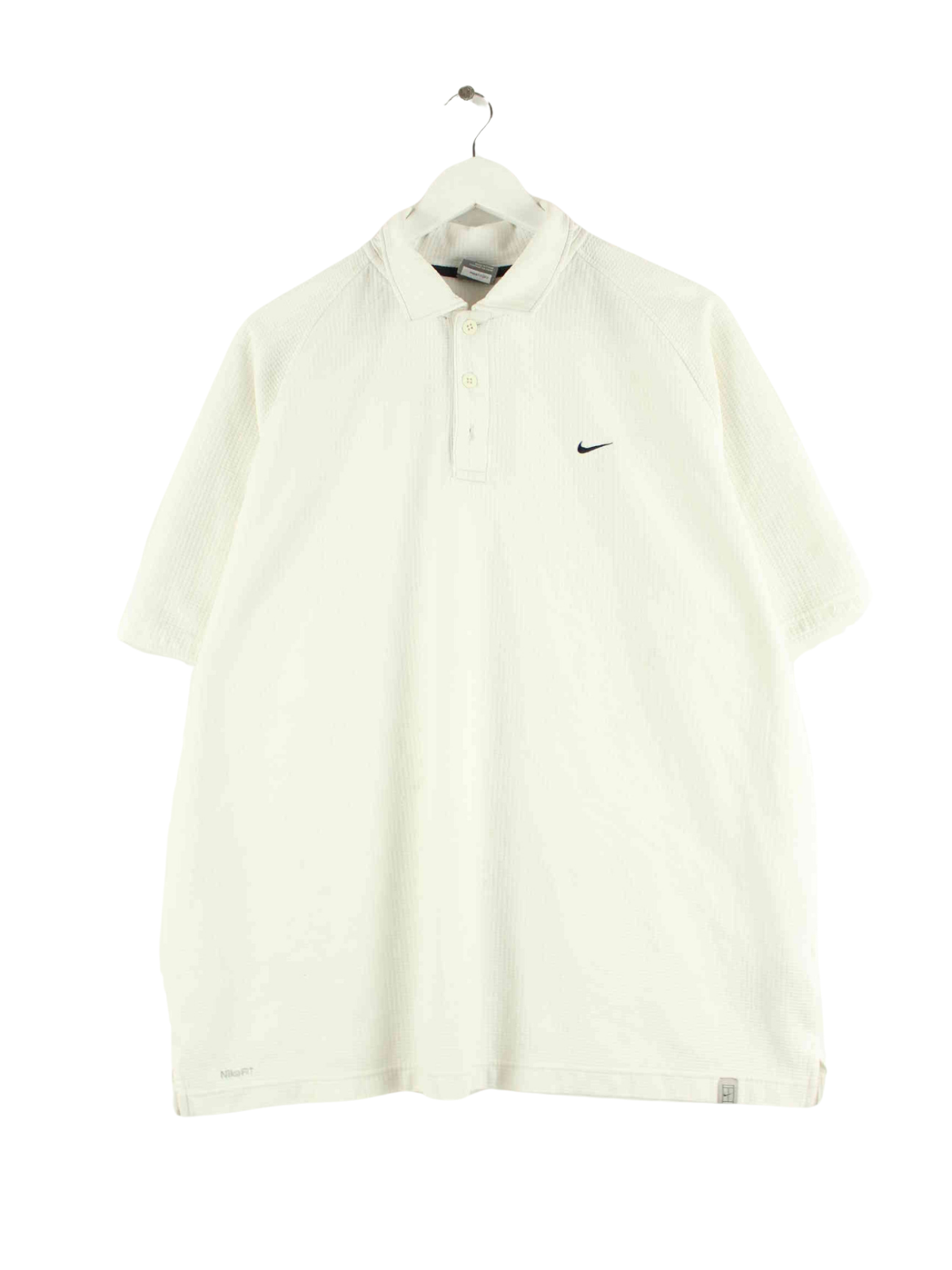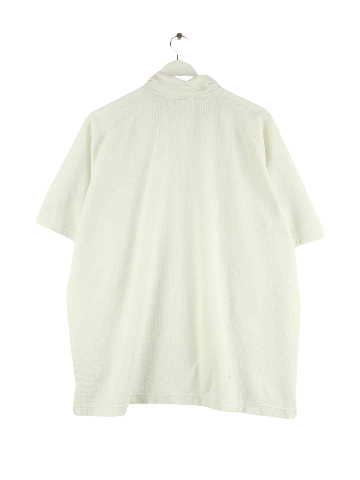 Weißes Poloshirt vom Brand Nike aus Anfang der 2000'er in Größe XXL. Es ist aus einer Baumwollmischung gefertigt. Den Zustand würden wir als 'In Ordnung' bezeichnen (vergl. Bilder).