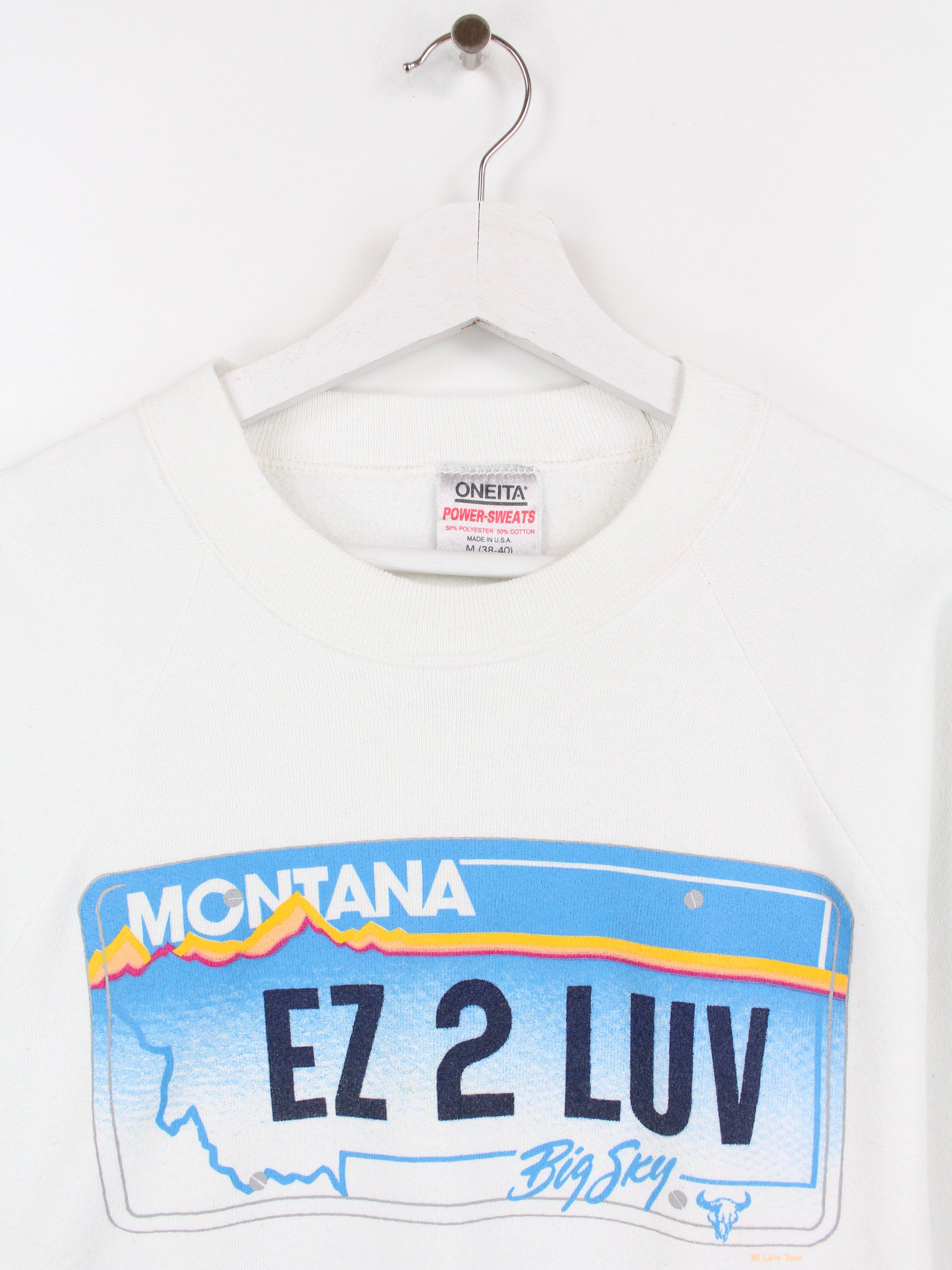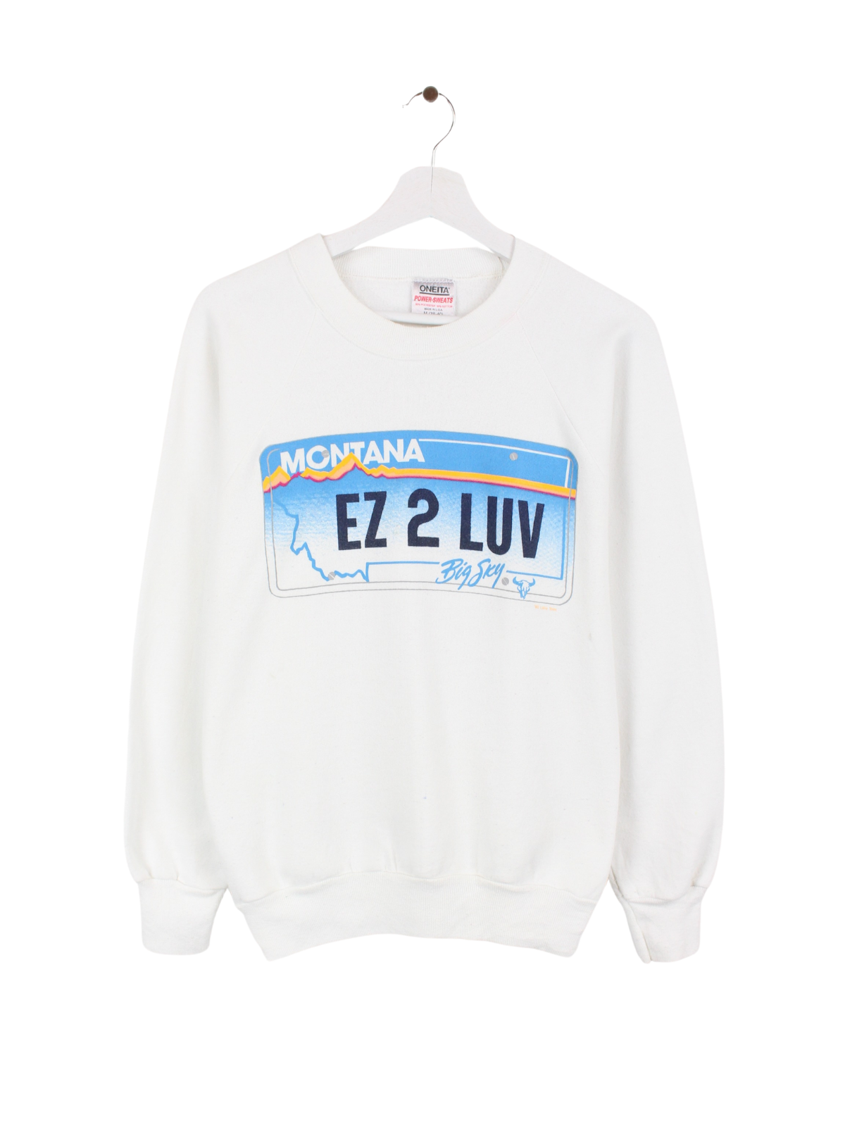 Oneita 90s Vintage Montana Print Sweater Weiß M