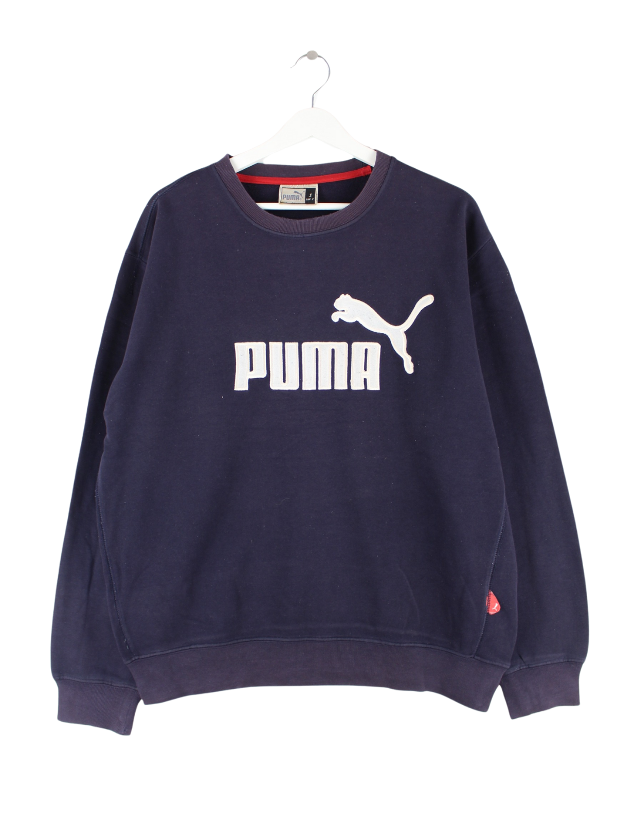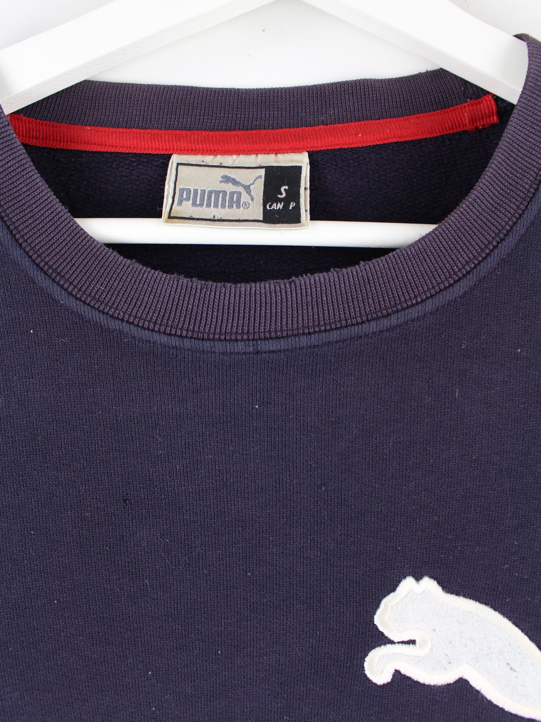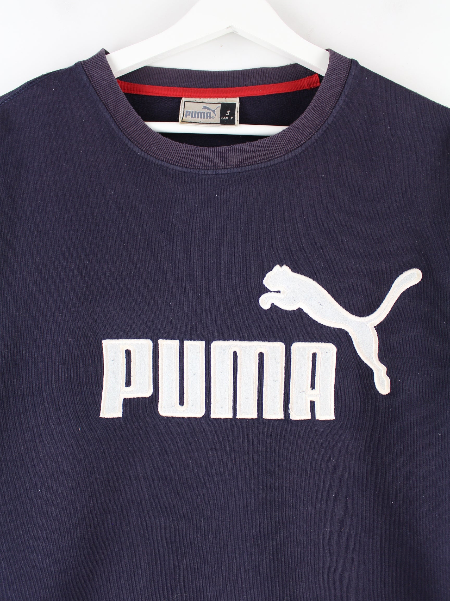 Sweater vom Brand Puma mit gesticktem Logo in Größe S. Er ist aus einer Baumwollmischung gemacht und in Blau in Stock.