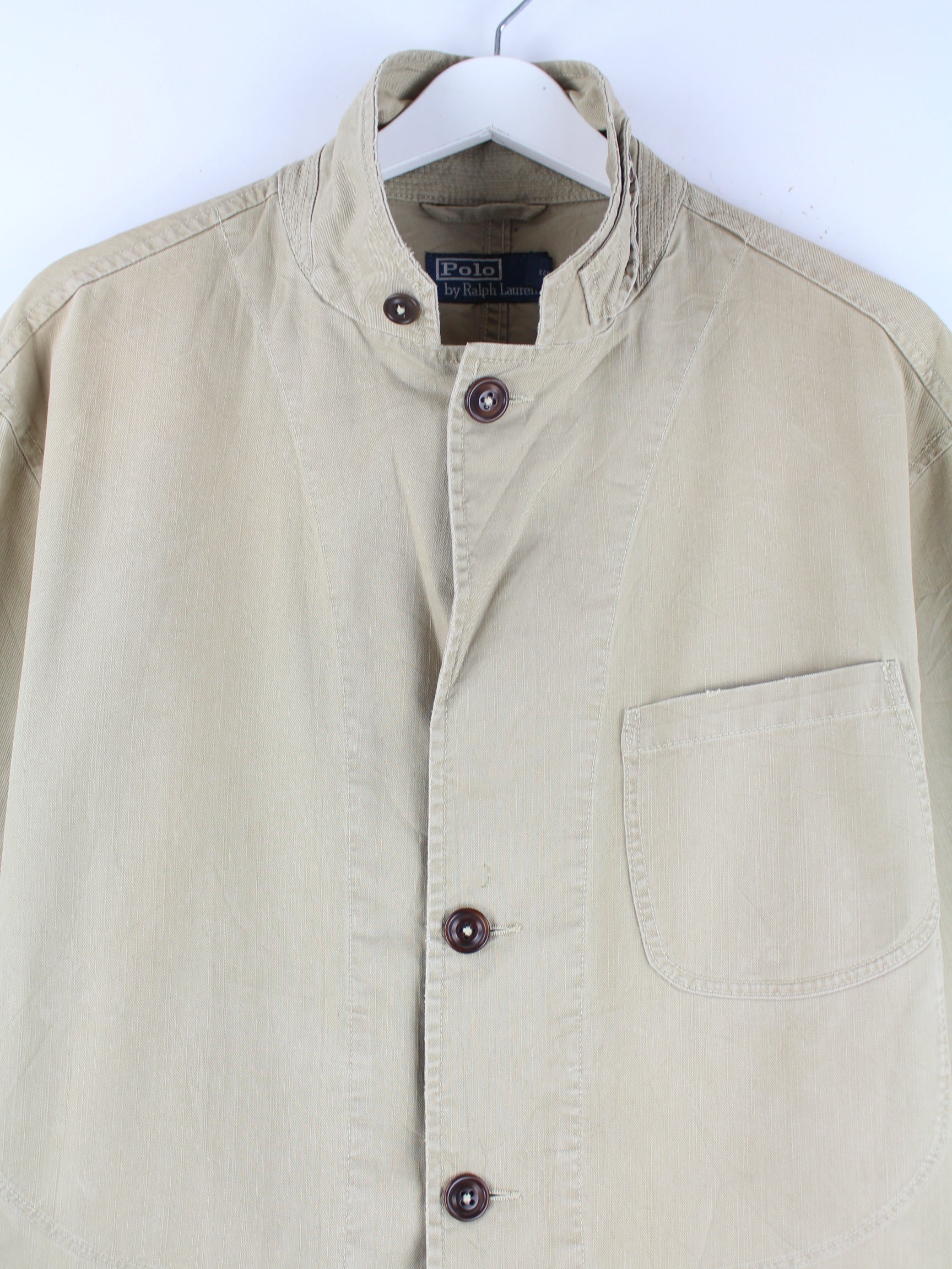 Leichte Jacke von Ralph Lauren in Größe L aus den 90'ern. Sie ist aus einer Baumwollmischung angefertigt und in Braun zu haben.