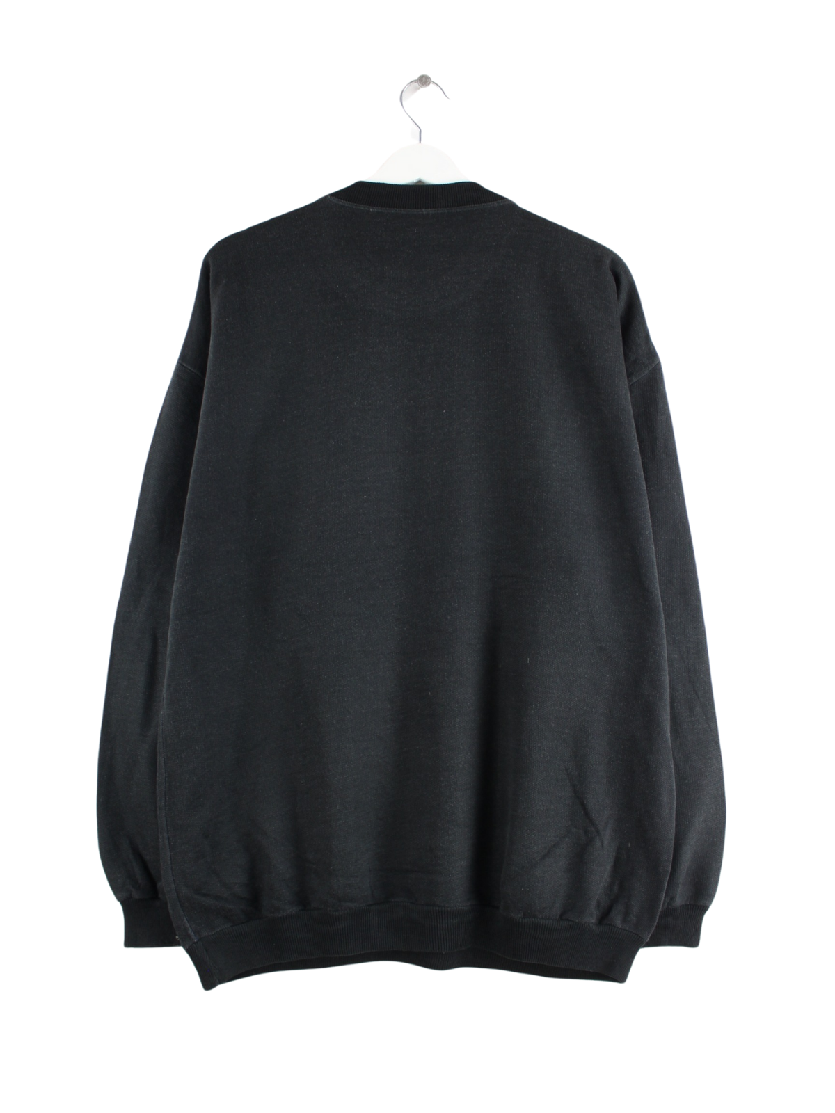 Schwarzer Sweater von Reebok aus den 80'ern in Größe L. Er ist aus einer Baumwollmischung angefertigt und in gutem Zustand bei uns vorrätig. Mit chiquem Vintage Print.