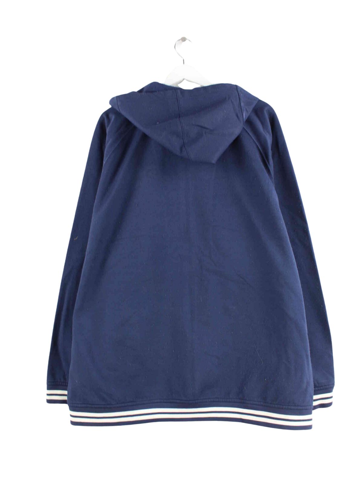 Blauer Hoodie mit gestickten Mustern und Zip aus dem Hause Reebok aus Anfang der 2000'er in Größe XXL. Er ist aus einer Baumwollmischung und in sehr gutem Zustand zu bekommen.