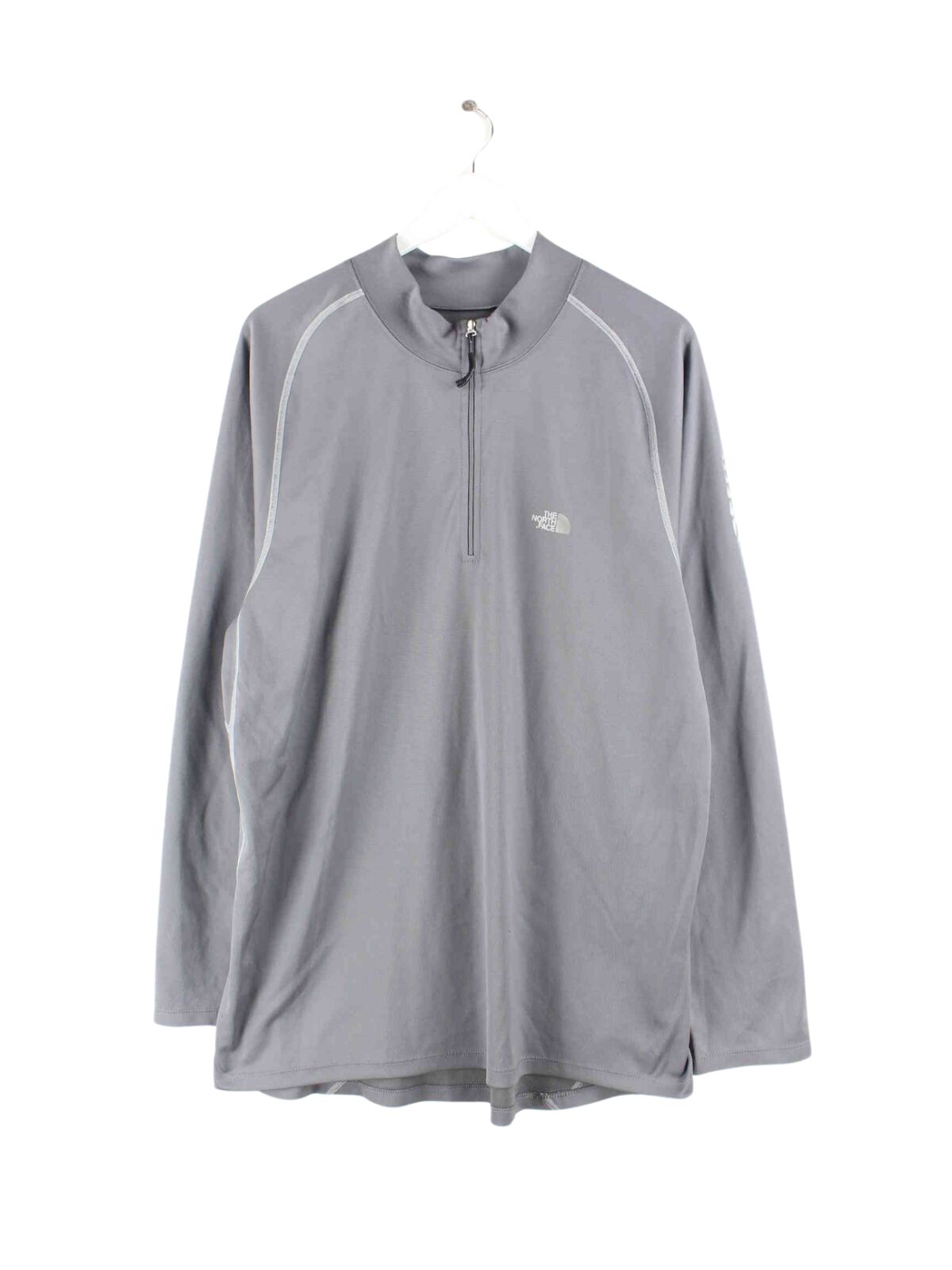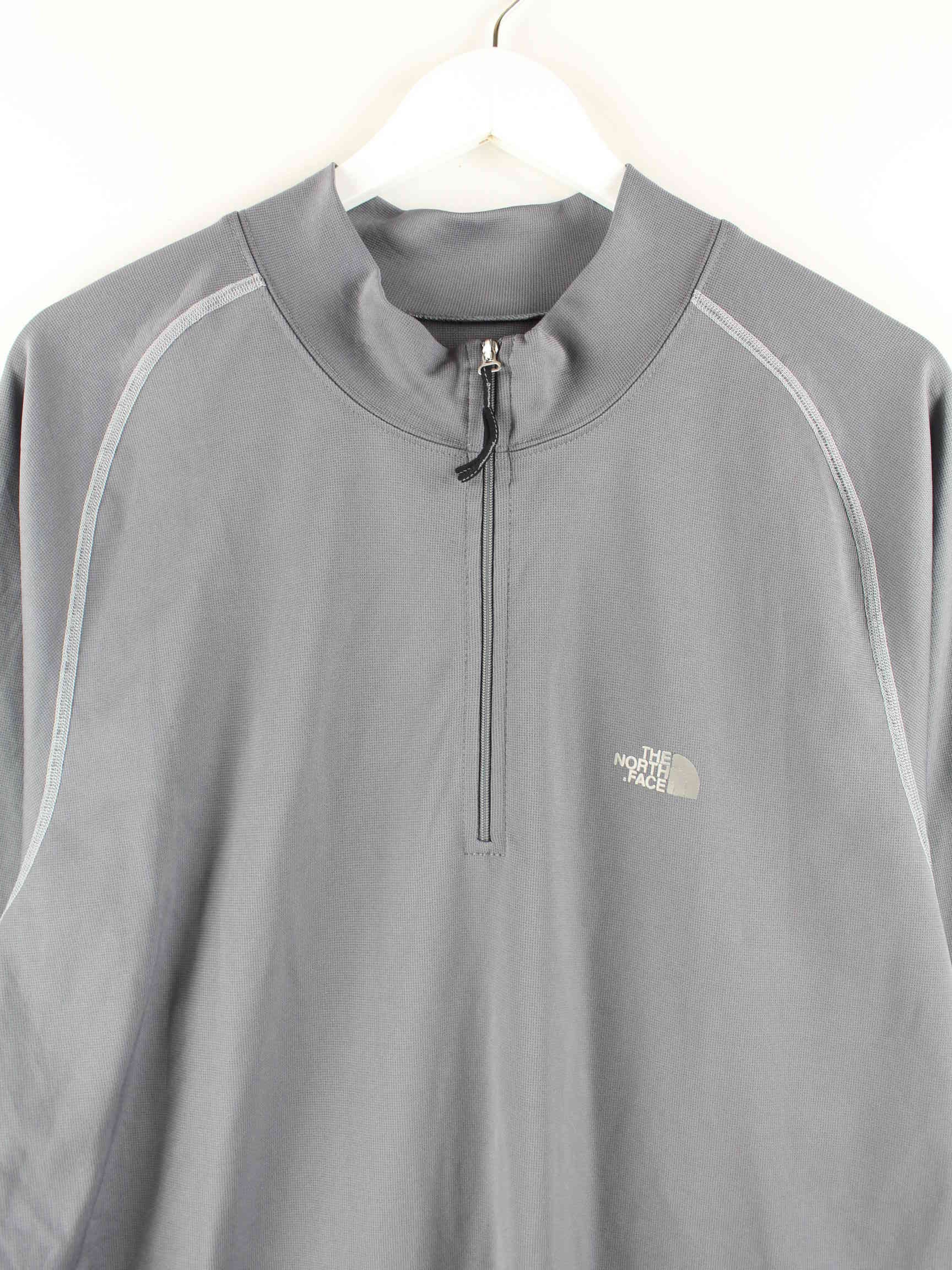 Graues Sweatshirt mit halbem Reißverschluß der Marke The North Face in Größe XXL. Es ist aus Synthetik und in gutem Zustand im Angebot.