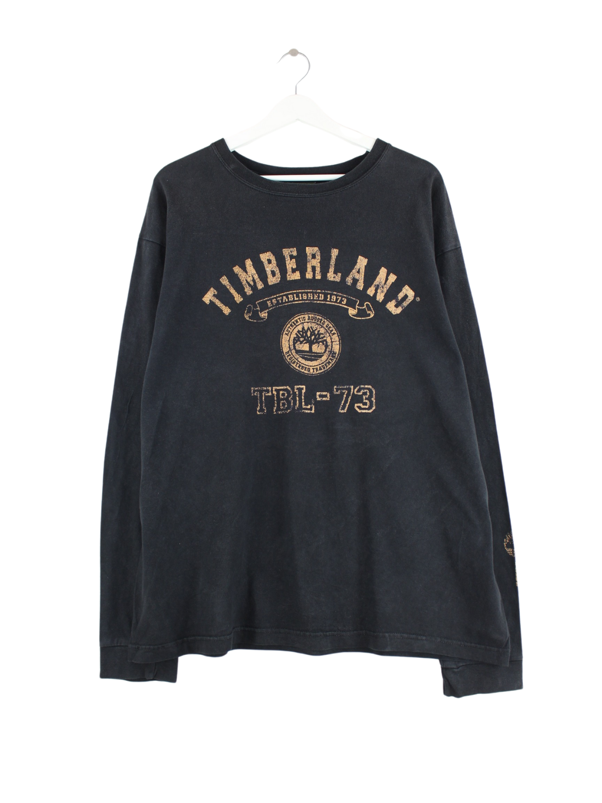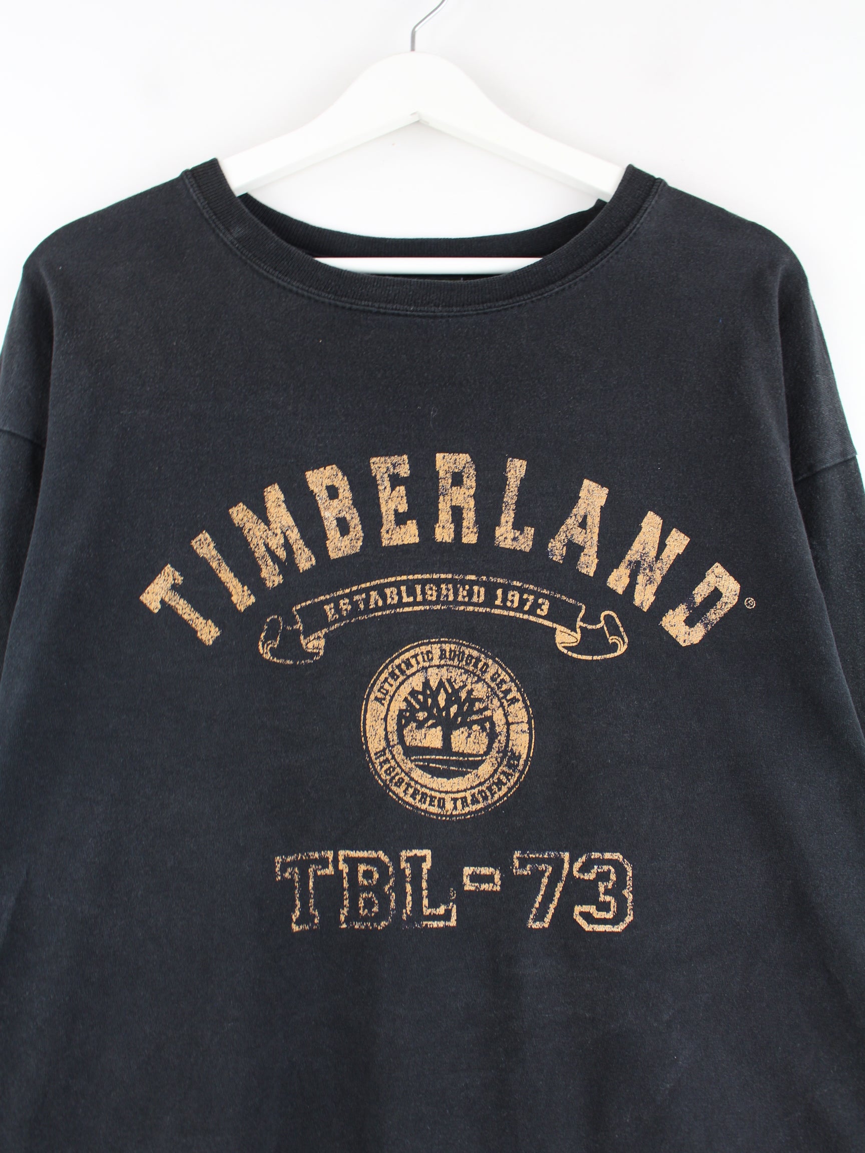Schwarzes Sweatshirt des Labels Timberland in Größe XL. Es ist aus Baumwolle gemacht und in gutem Zustand vorrätig. Mit schickem Print.