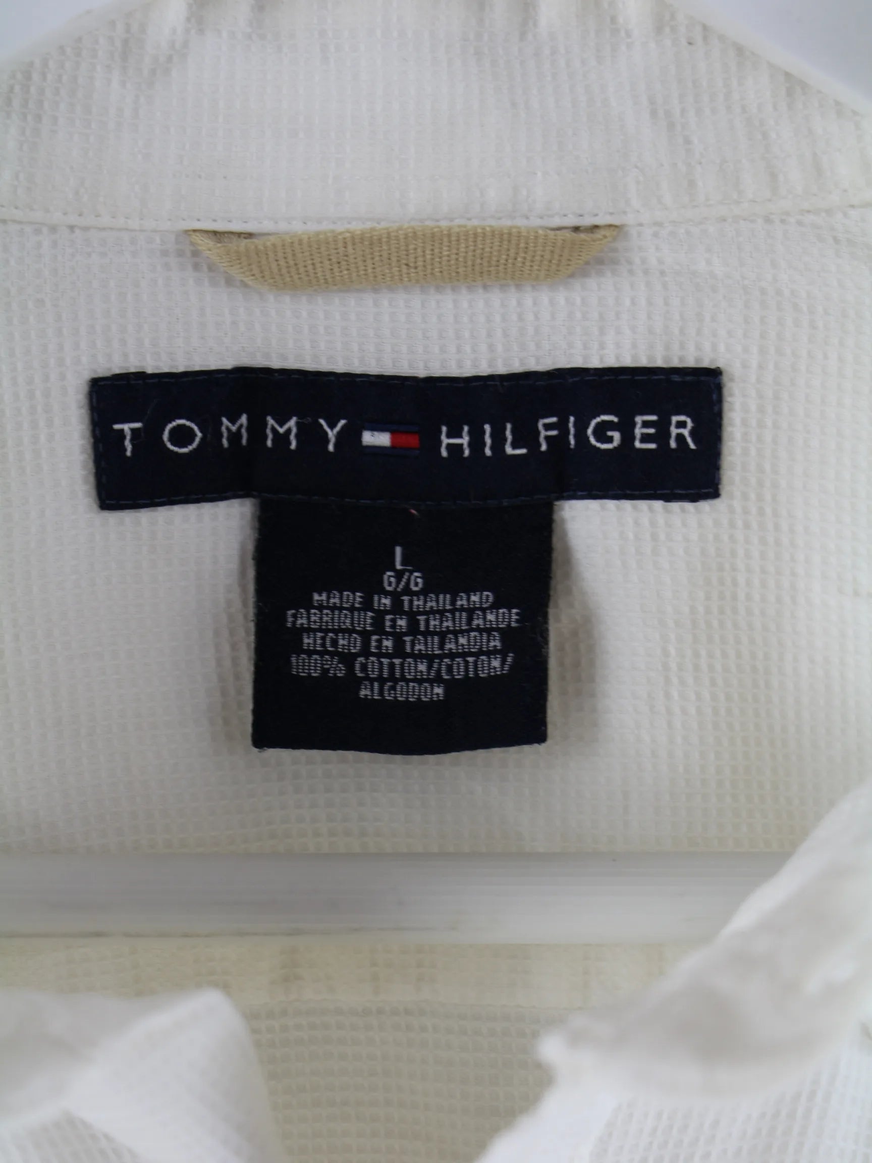 Weißes Hemd vom Brand Tommy Hilfiger in Größe L. Es ist aus Baumwolle hergestellt und in sehr gutem Zustand auf Lager.