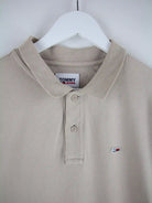 Braunes Poloshirt der Brand Tommy Hilfiger in Größe M. Es ist aus Baumwolle produziert und in sehr gutem Zustand vorrätig.