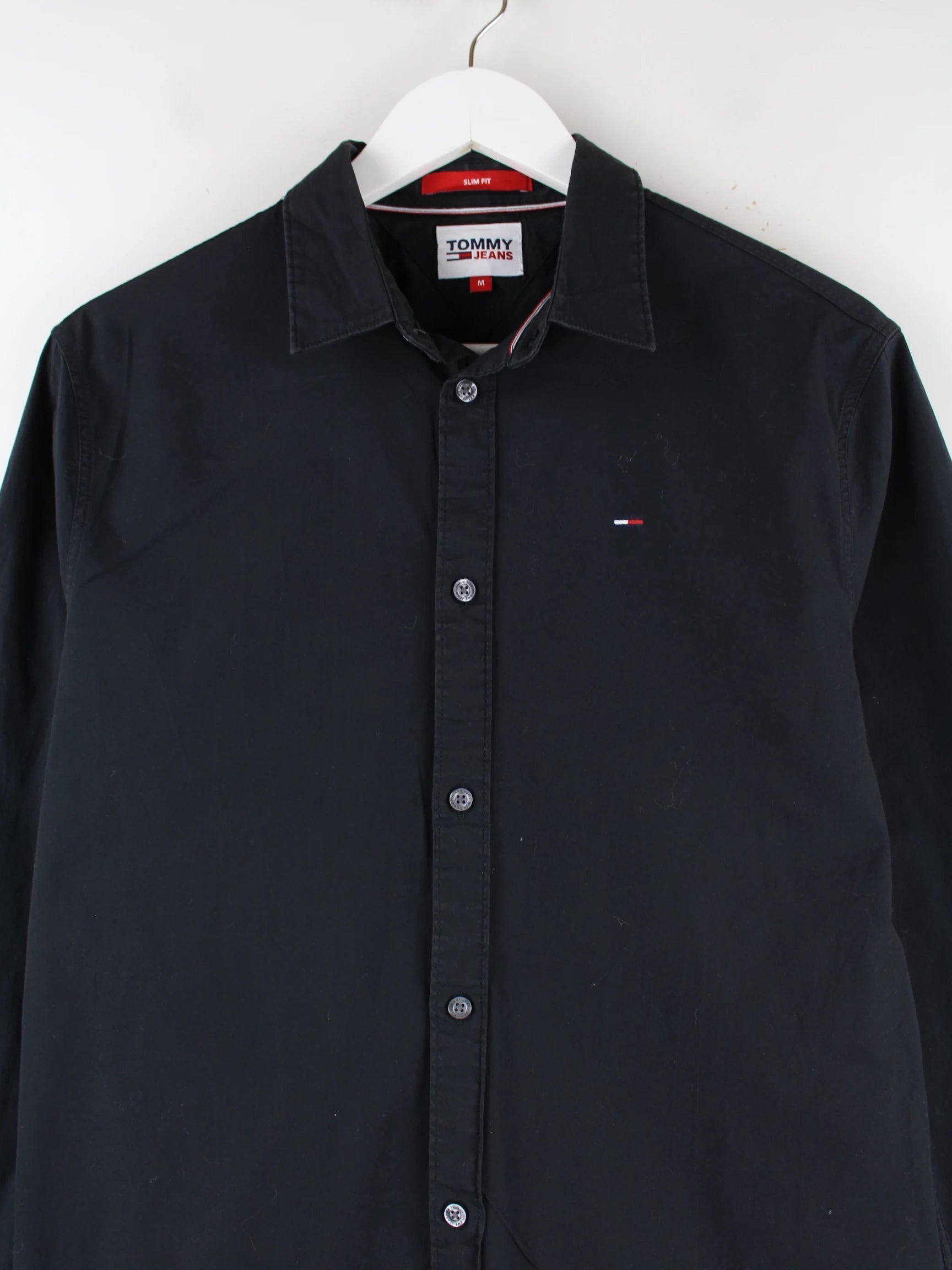Schwarzes Hemd des Labels Tommy Hilfiger in Größe M. Es ist aus Baumwolle angefertigt und in gutem Zustand im Angebot.