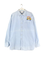 Vintage 00s School Bus Embroidered Jeans Hemd Blau XXL