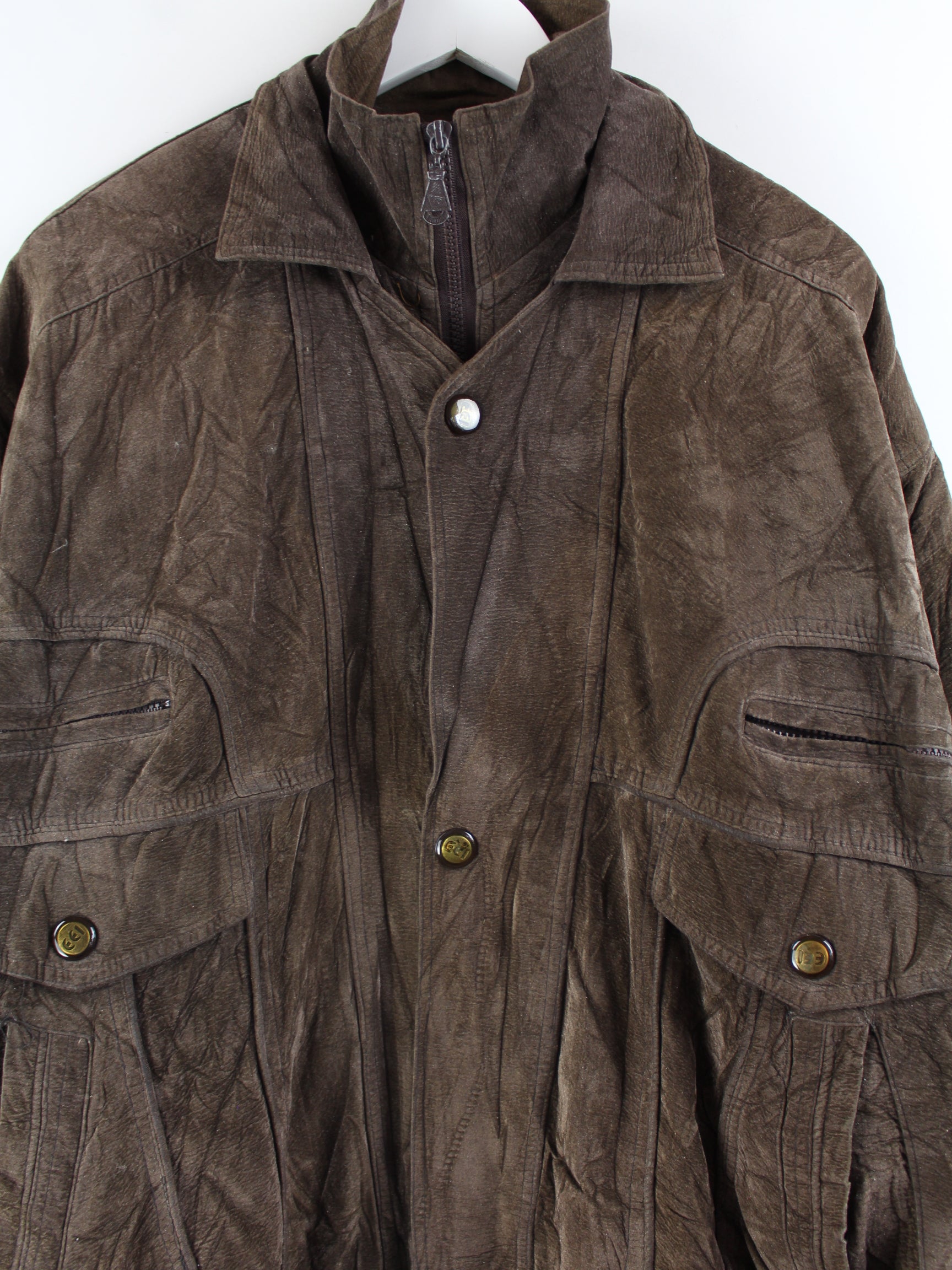Blaue Vintage Jacke aus den 90'ern in Größe L. Sie ist aus Synthetik produziert und in sehr gutem Zustand in Stock.