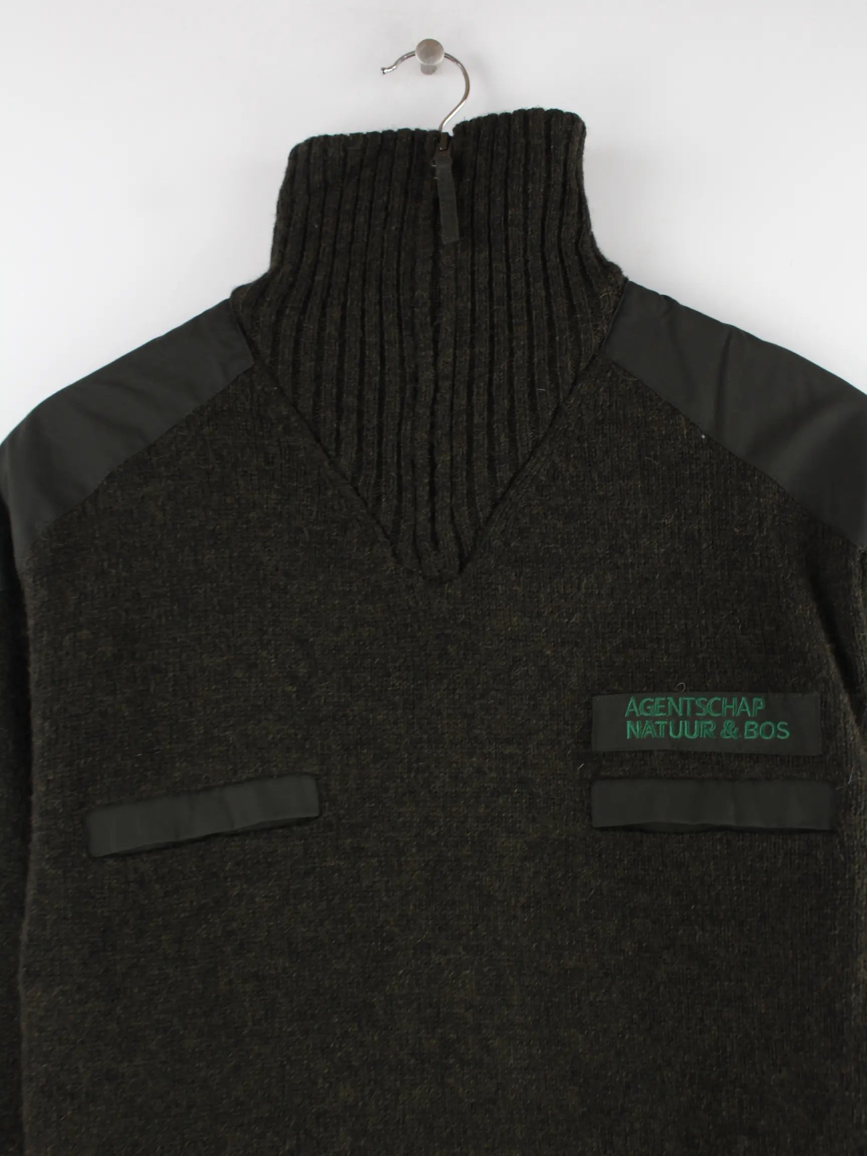 Vintage Pullover mit halbem Reißverschluß in Größe L aus den 90'ern. Er ist aus Baumwolle gemacht und in Braun im Bestand.