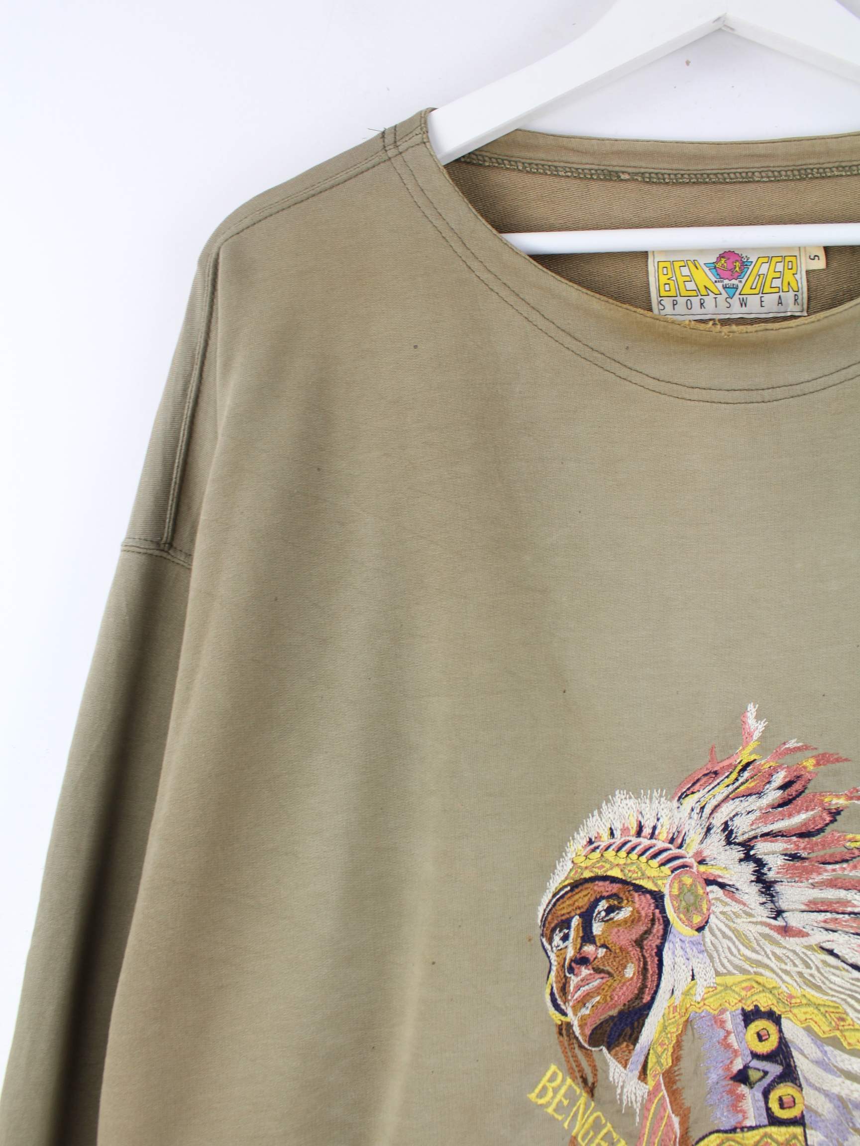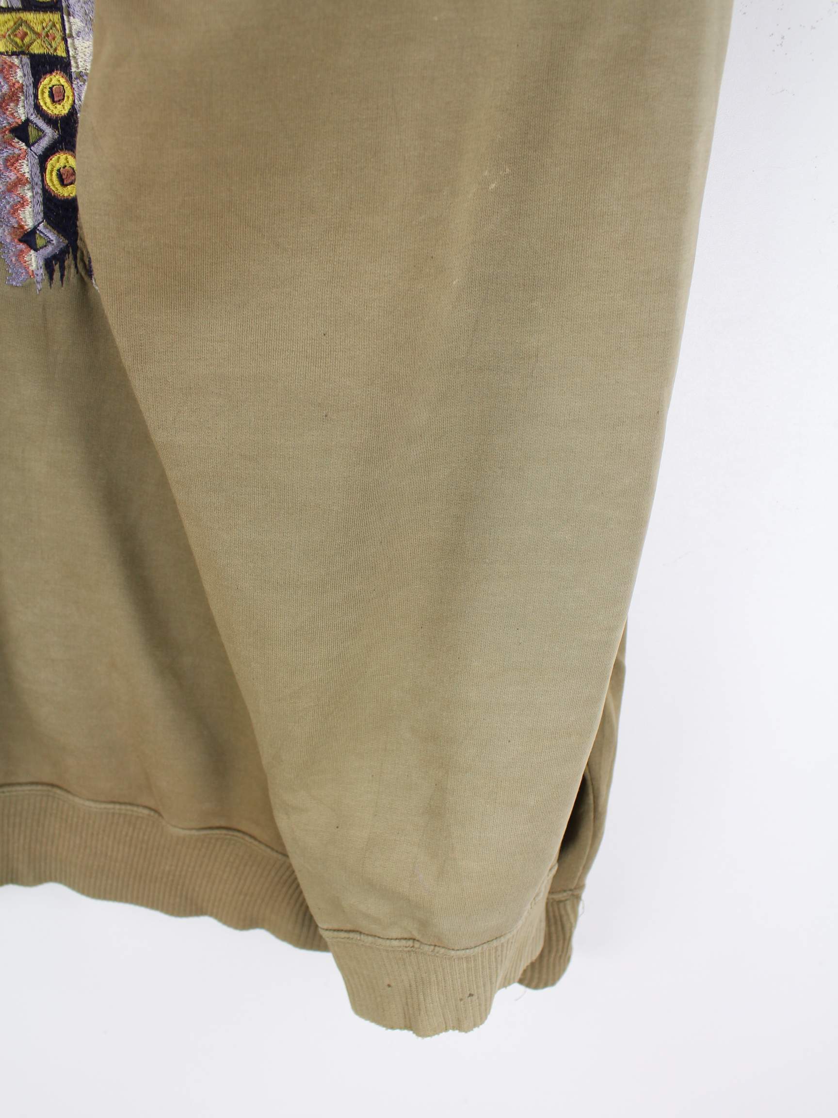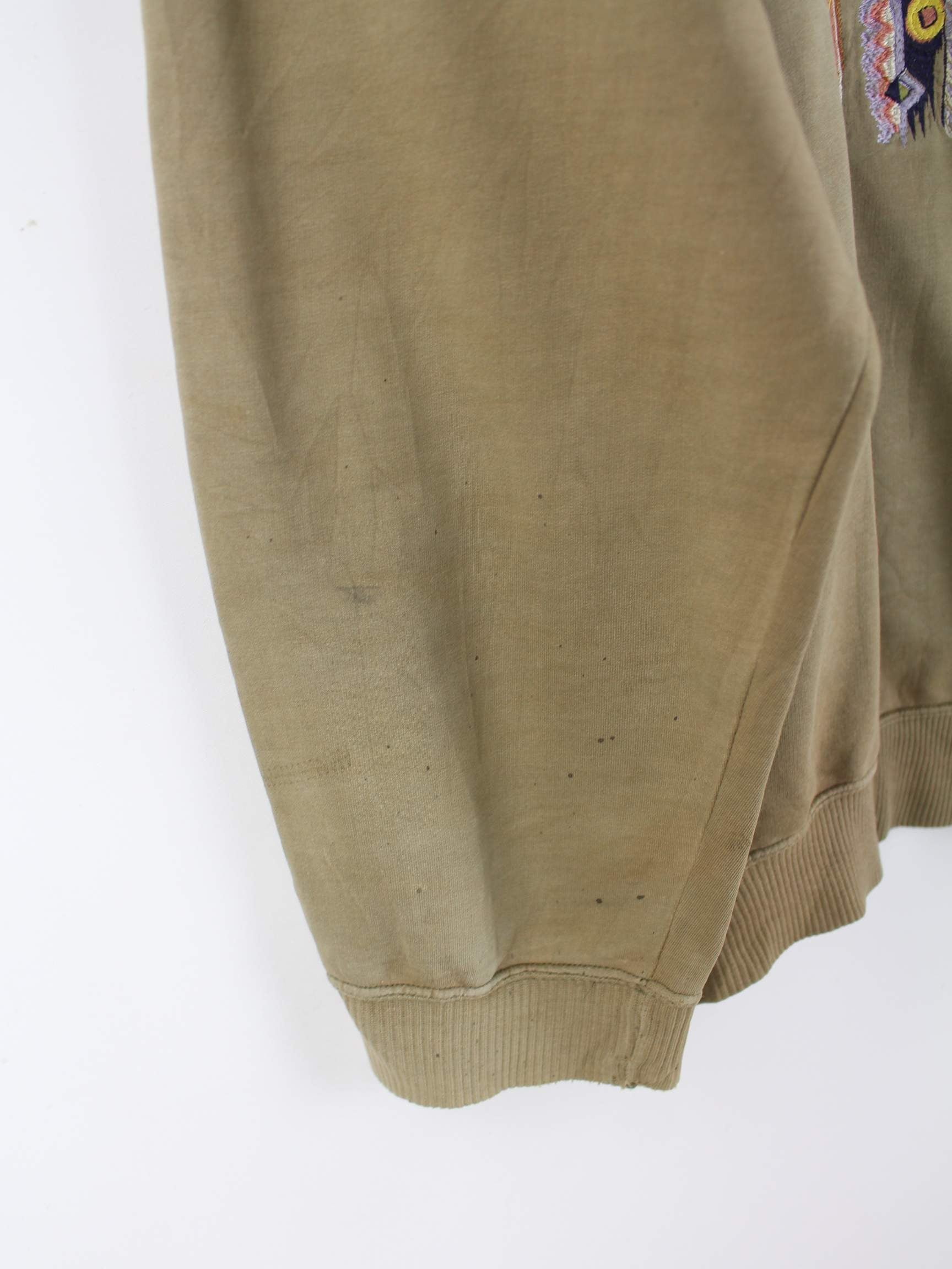 Braunes Vintage Sweatshirt mit Stick aus den 90'ern in Größe 3XL. Es ist aus Baumwolle produziert. Den Zustand würden wir als 'In Ordnung' bezeichnen (vergl. Bilder).