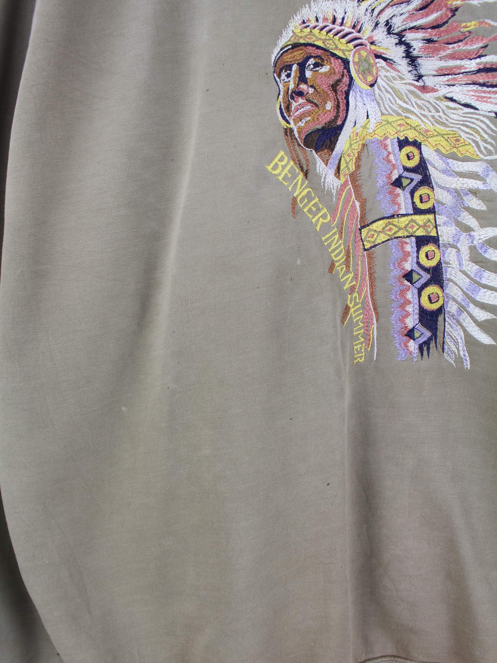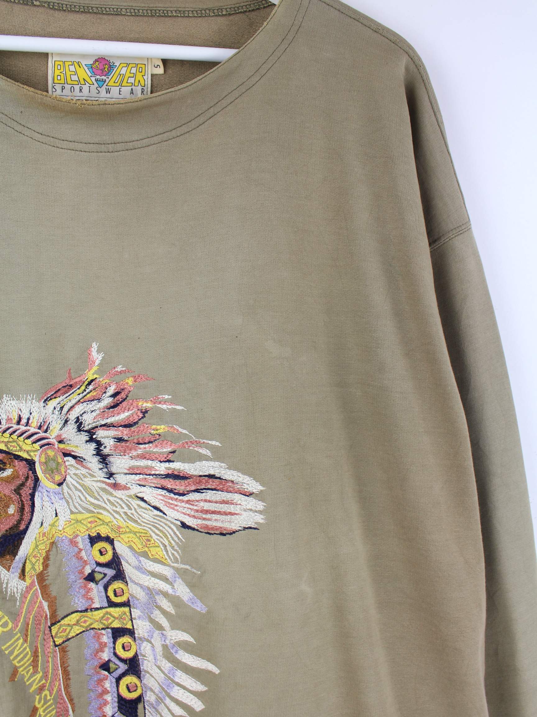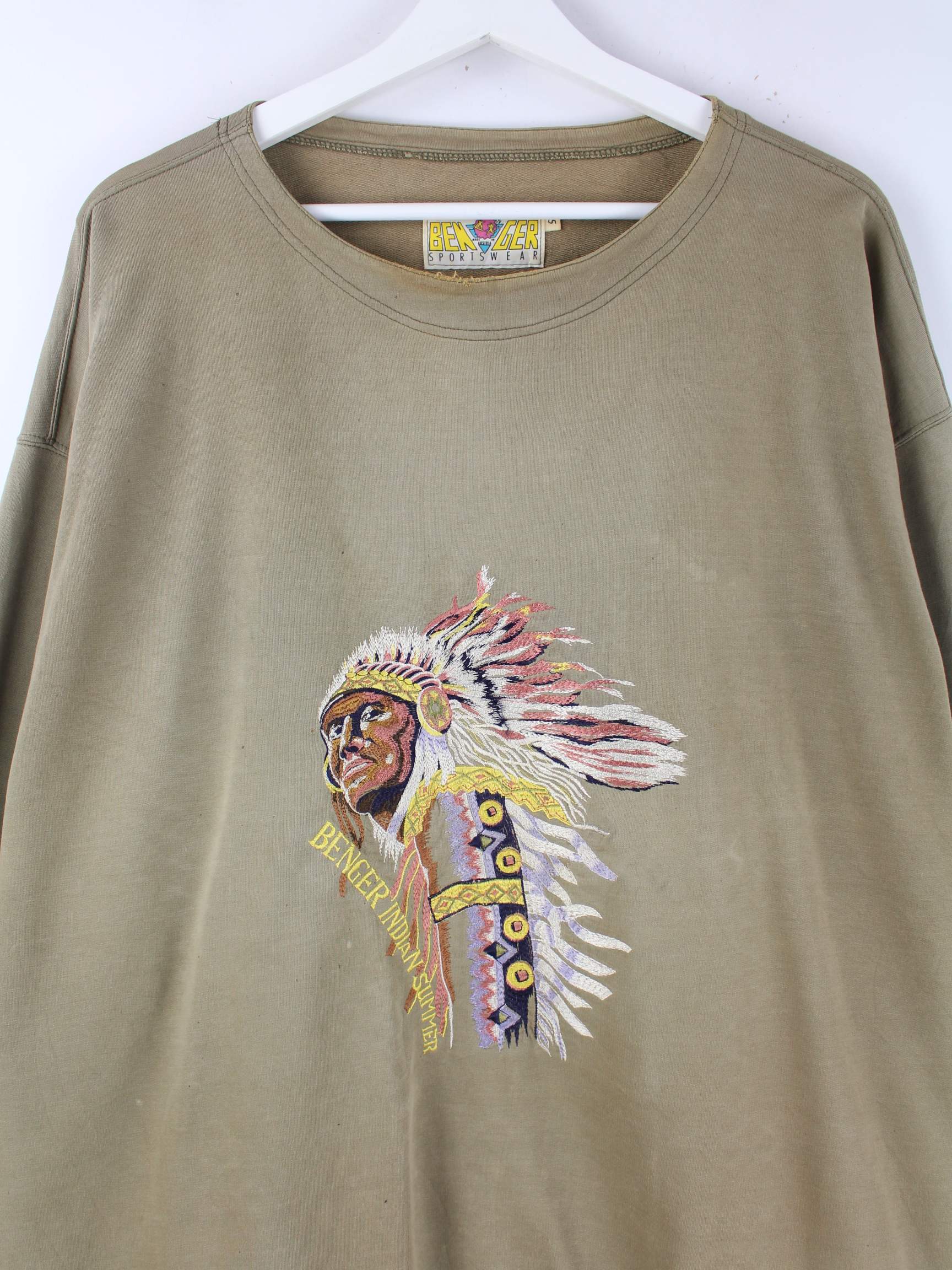 Braunes Vintage Sweatshirt mit Stick aus den 90'ern in Größe 3XL. Es ist aus Baumwolle produziert. Den Zustand würden wir als 'In Ordnung' bezeichnen (vergl. Bilder).