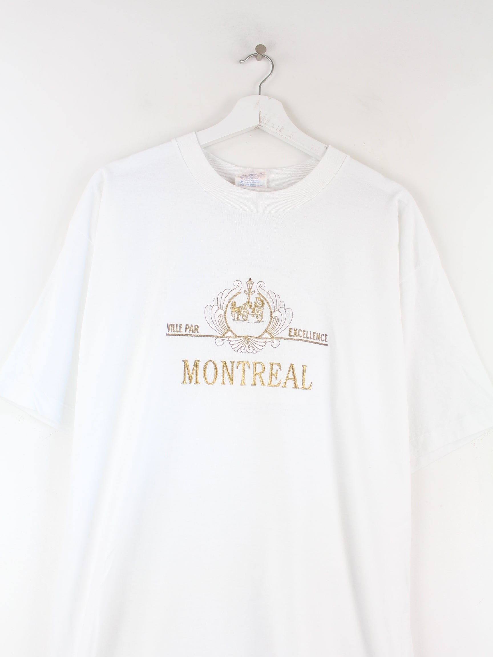 Vintage 90s Montreal Embroidered Single Stitch T-Shirt Weiß XL
