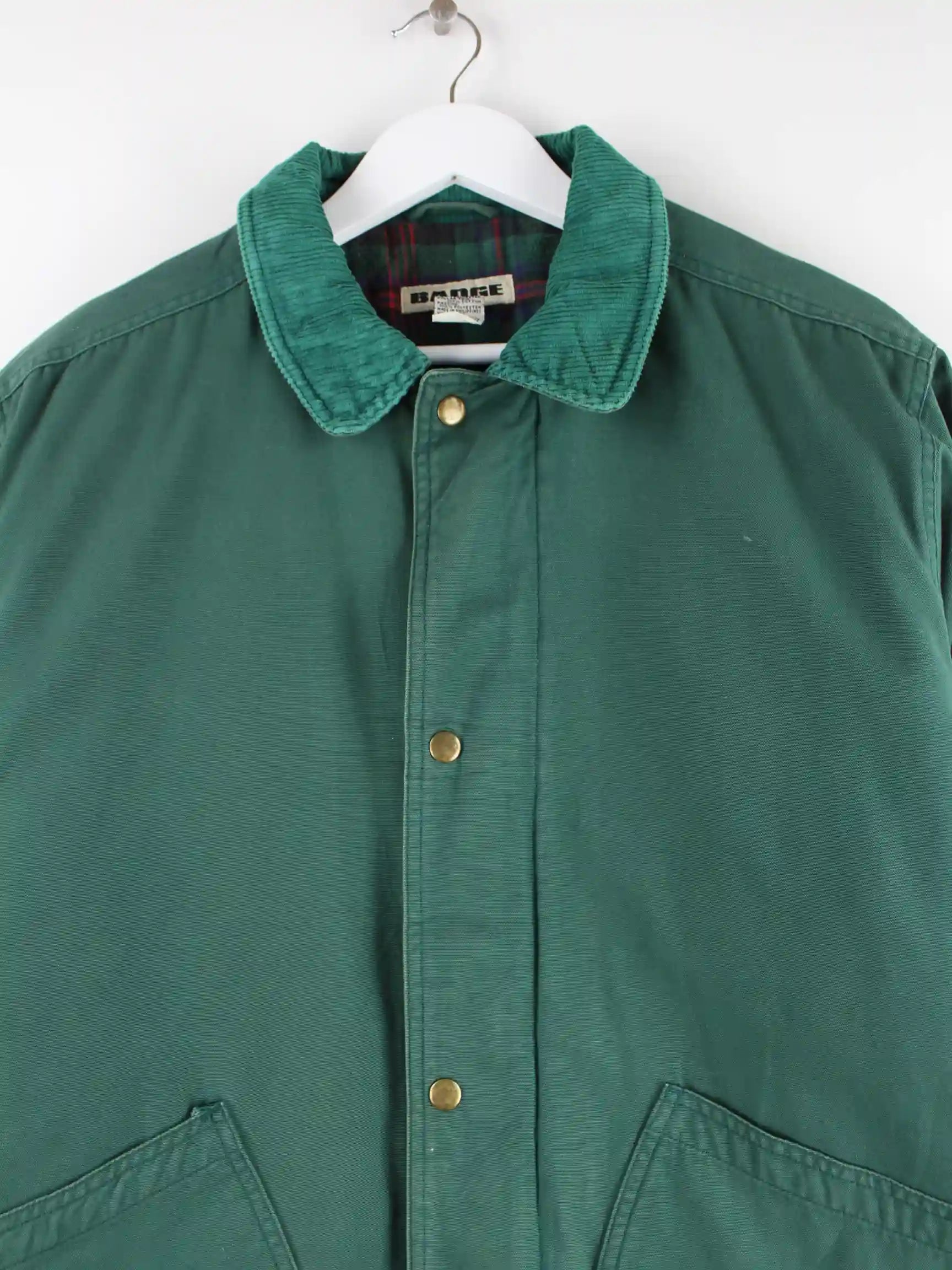 Vintage Jacke in Größe L aus den 90'ern. Sie ist aus Baumwolle gefertigt und in Grün in Stock.