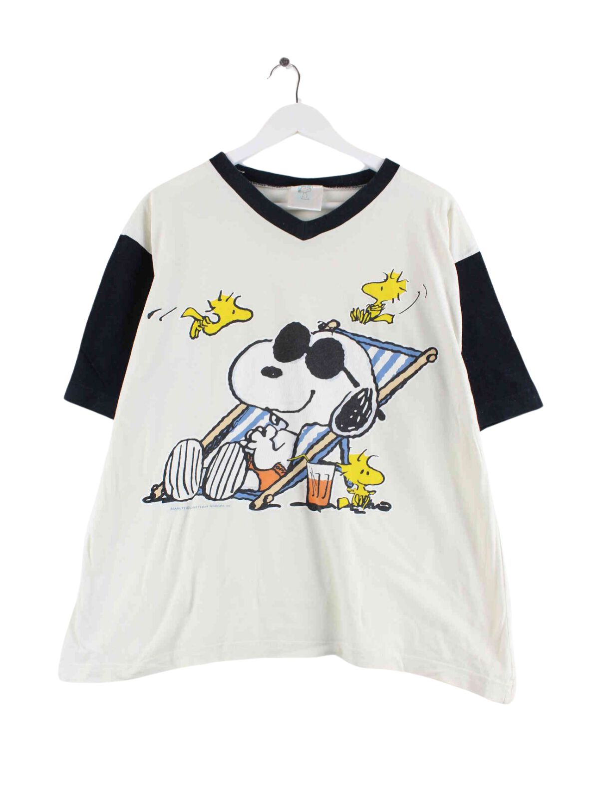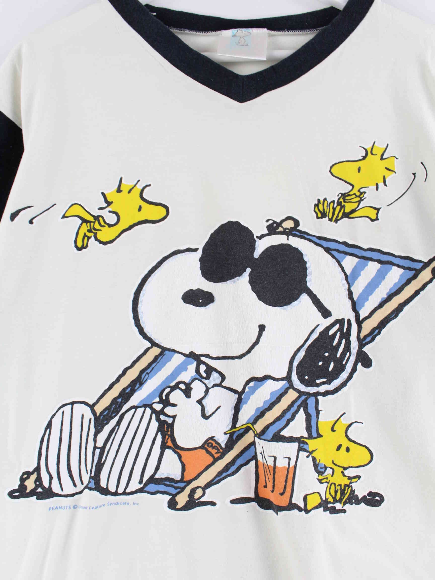 Vintage 90s Snoopy Print V-Neck T-Shirt Weiß M