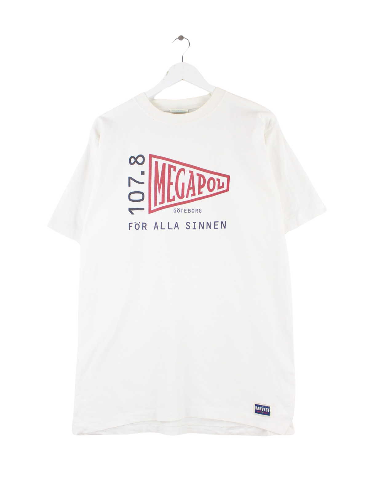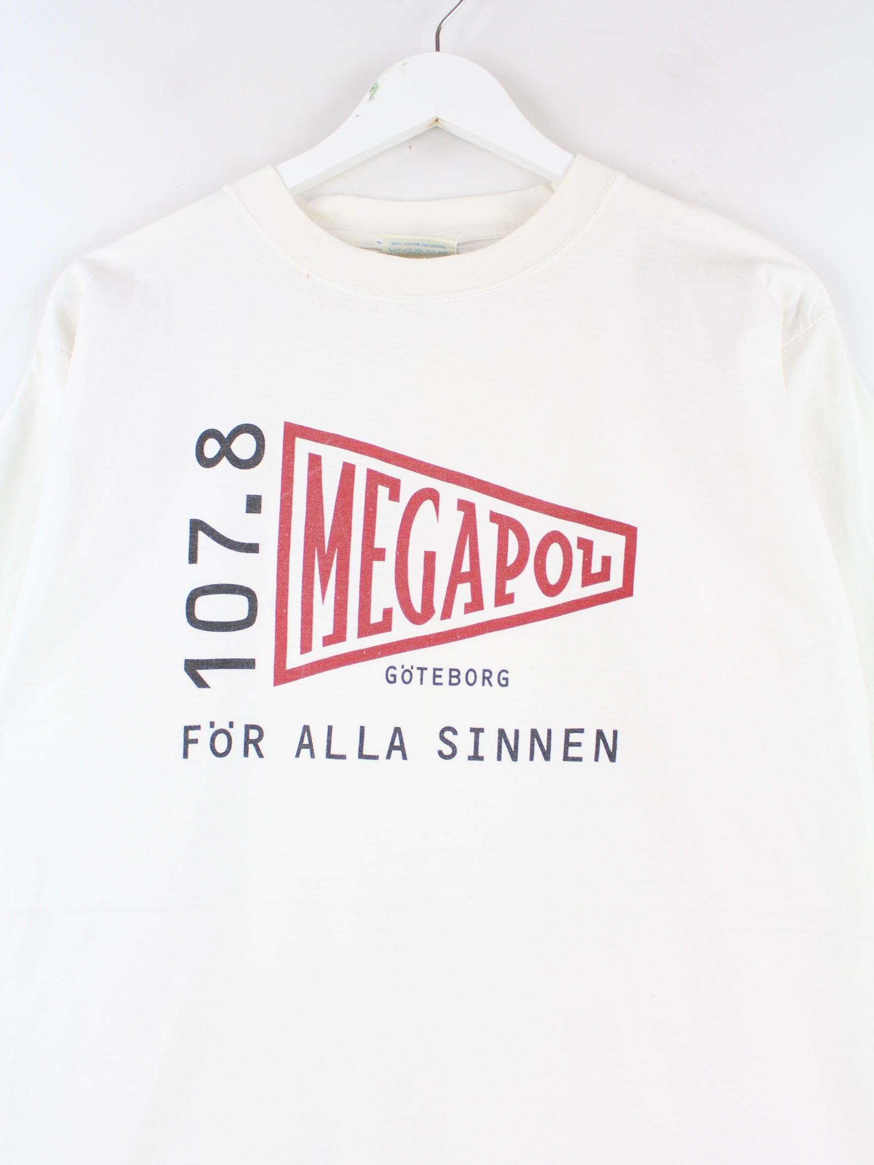 Vintage 90s Swedish Radio Print Single Stitch T-Shirt Weiß L