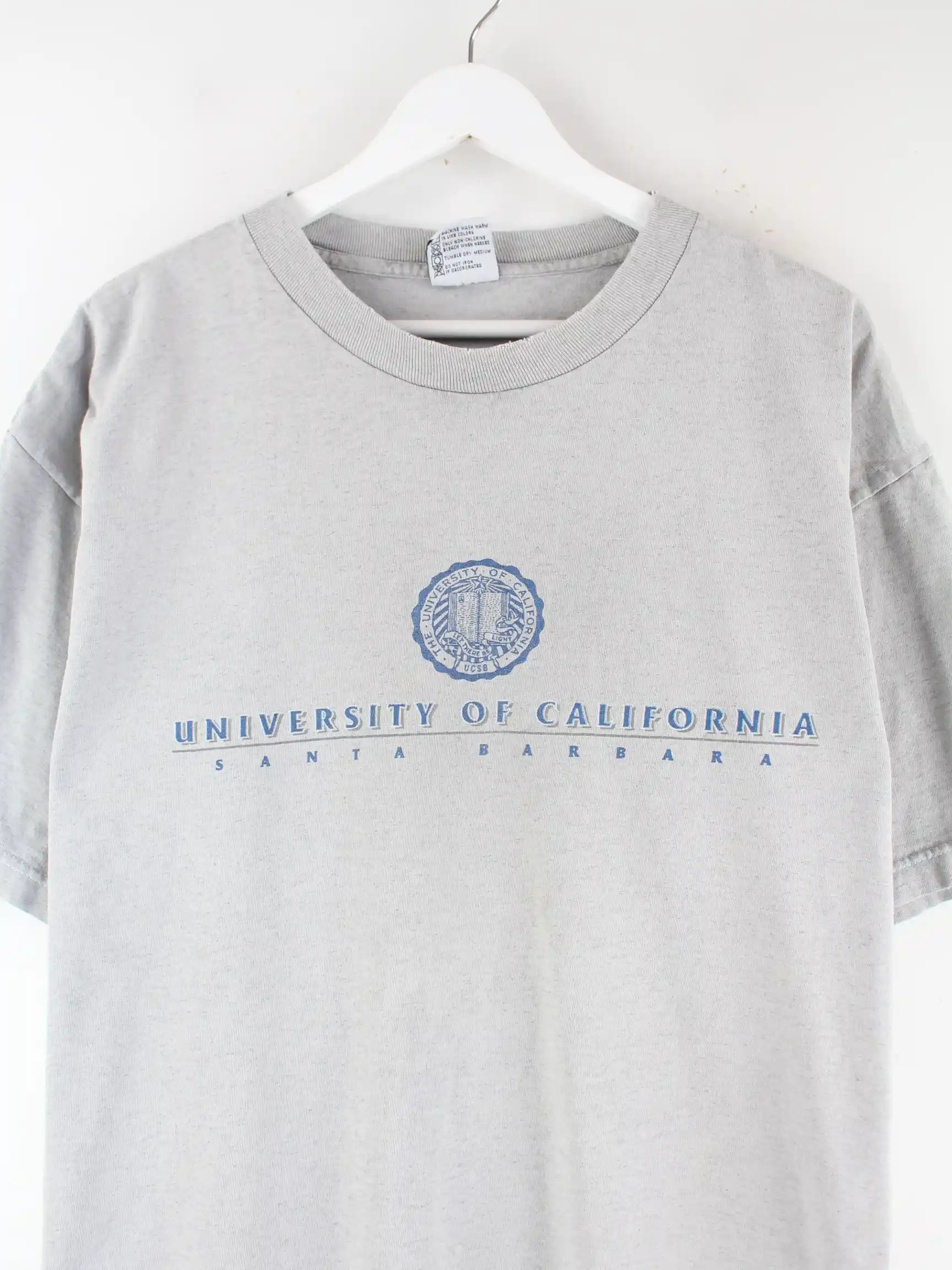 Vintage T-Shirt in Größe XL aus den 90'ern. Es ist aus Baumwolle angefertigt und in Grau lieferbar. Mit seltenem California Print.
