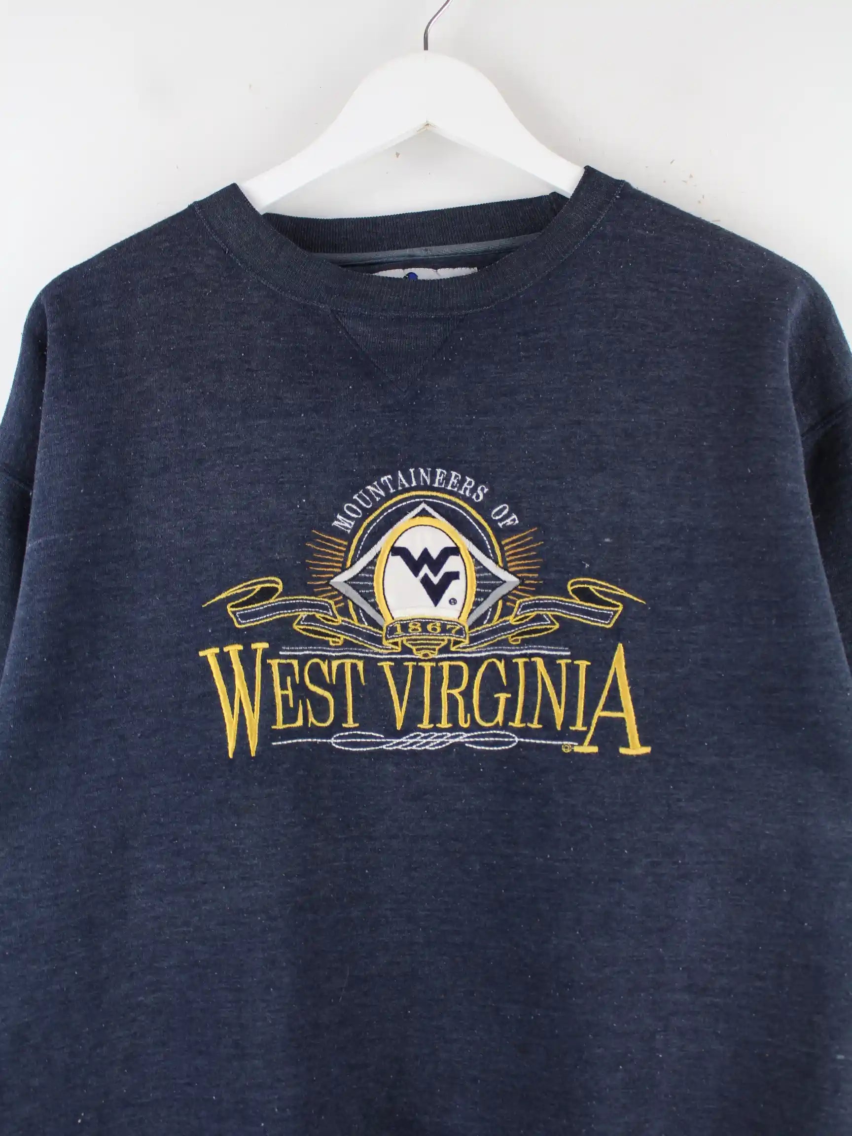 Vintage 90s West Virginia Embroidered Sweater Blau M