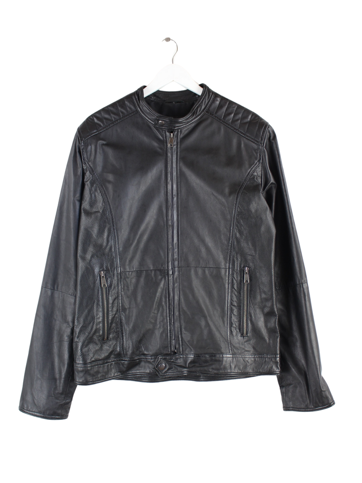 Vintage Jacke in Größe L. Sie ist aus Leder gemacht und in Schwarz in Stock.