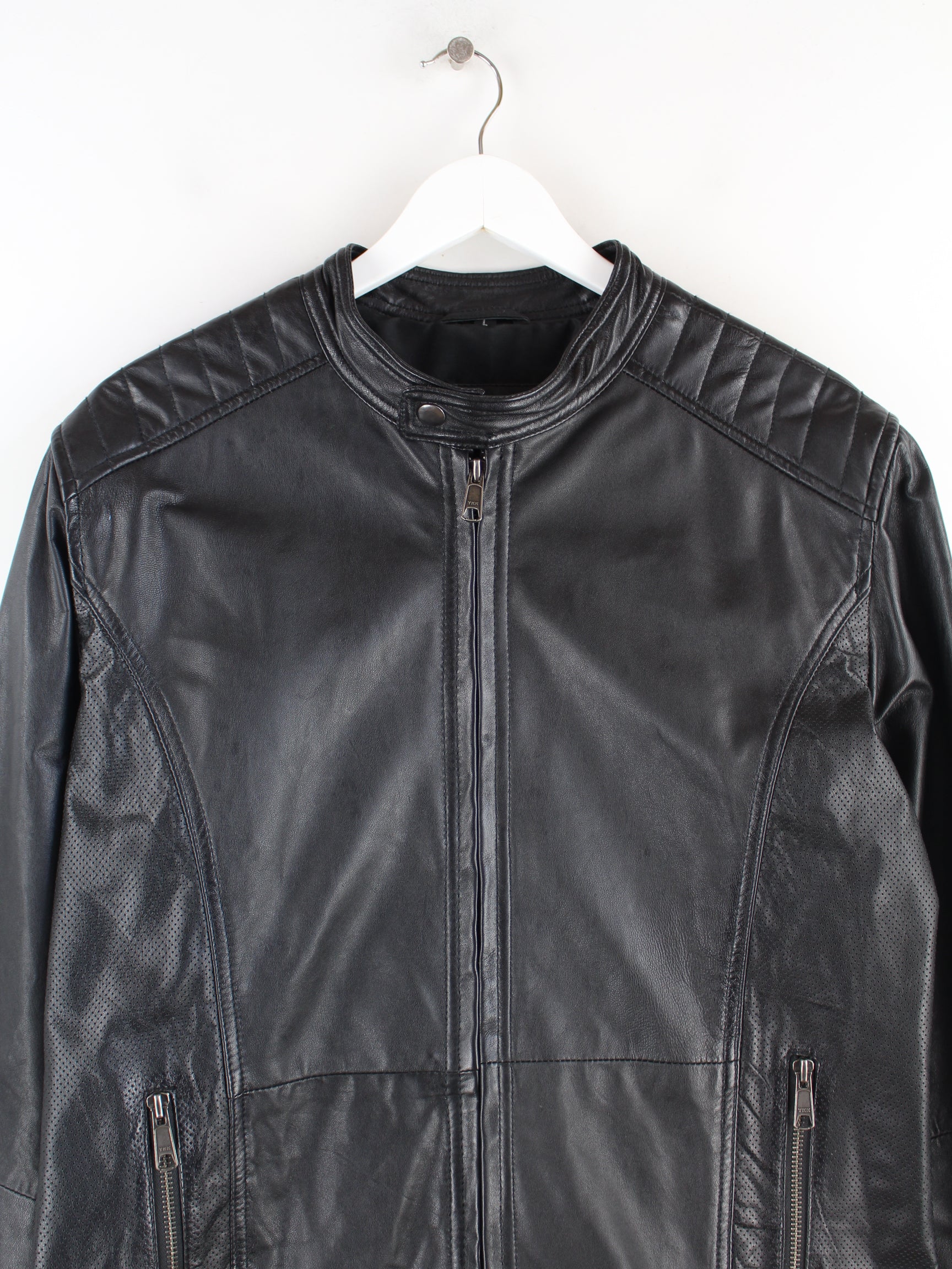 Vintage Biker Leder Jacke Schwarz L