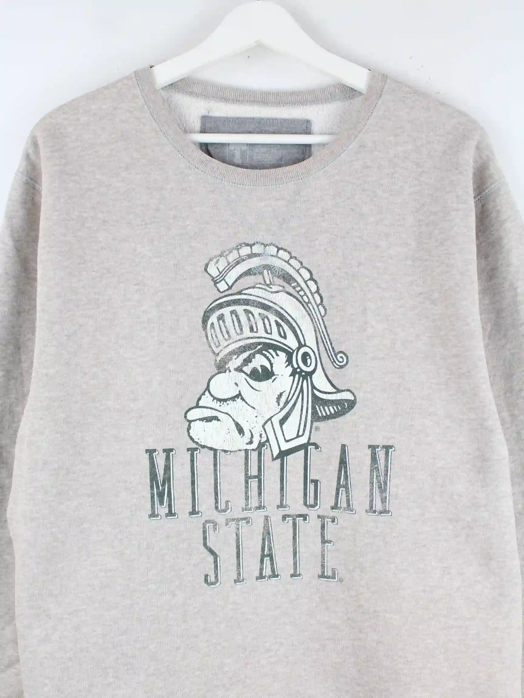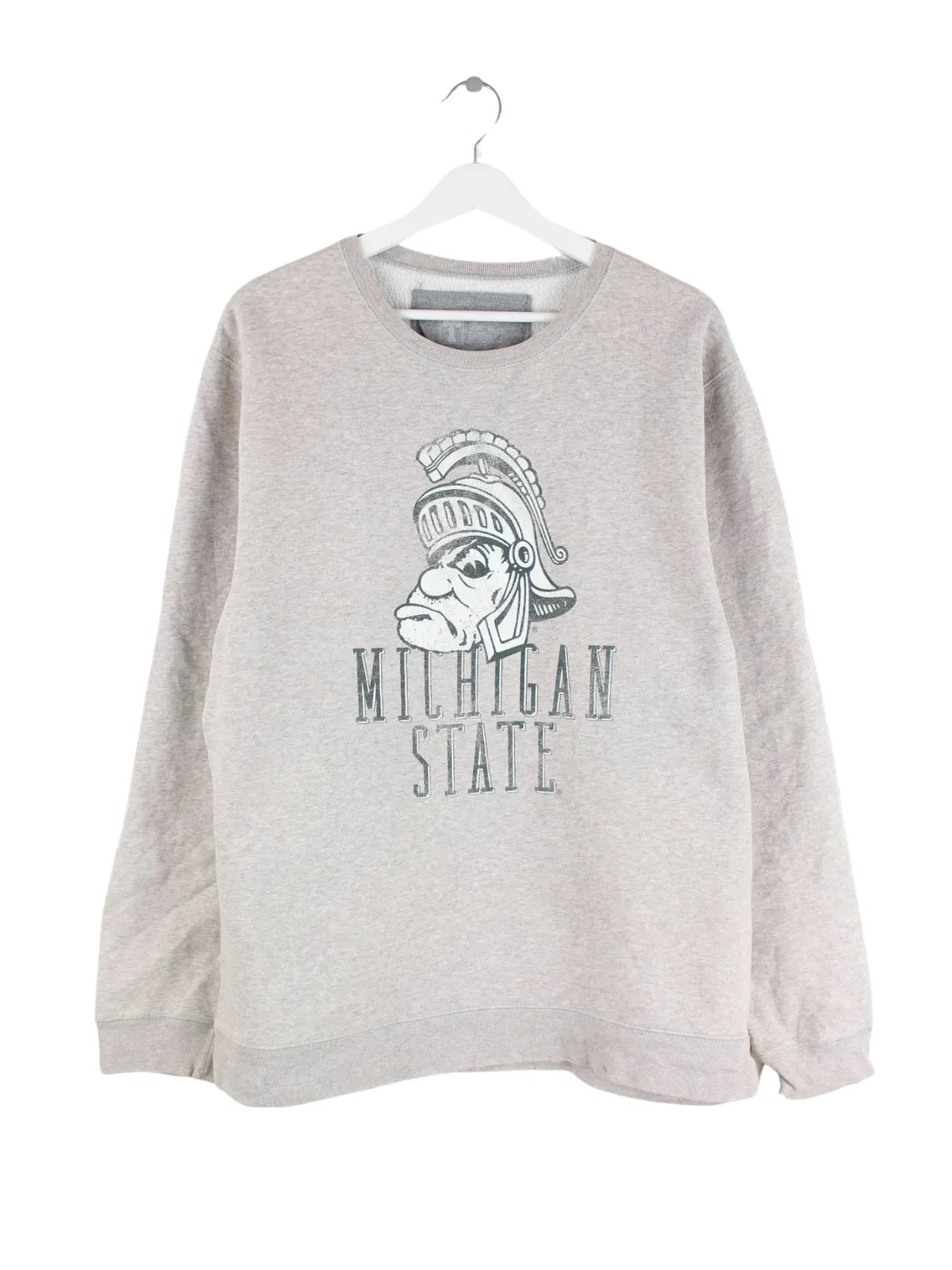 Grauer Vintage Sweater in Größe XL. Er ist aus einer Baumwollmischung angefertigt und in sehr gutem Zustand im Angebot. Mit seltenem Michigan Print.