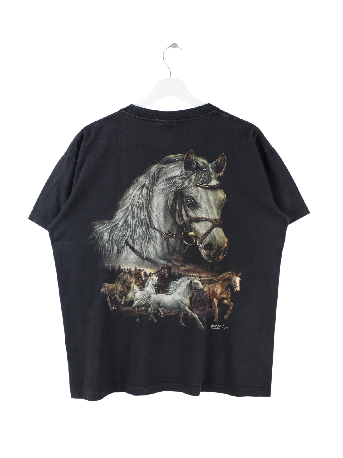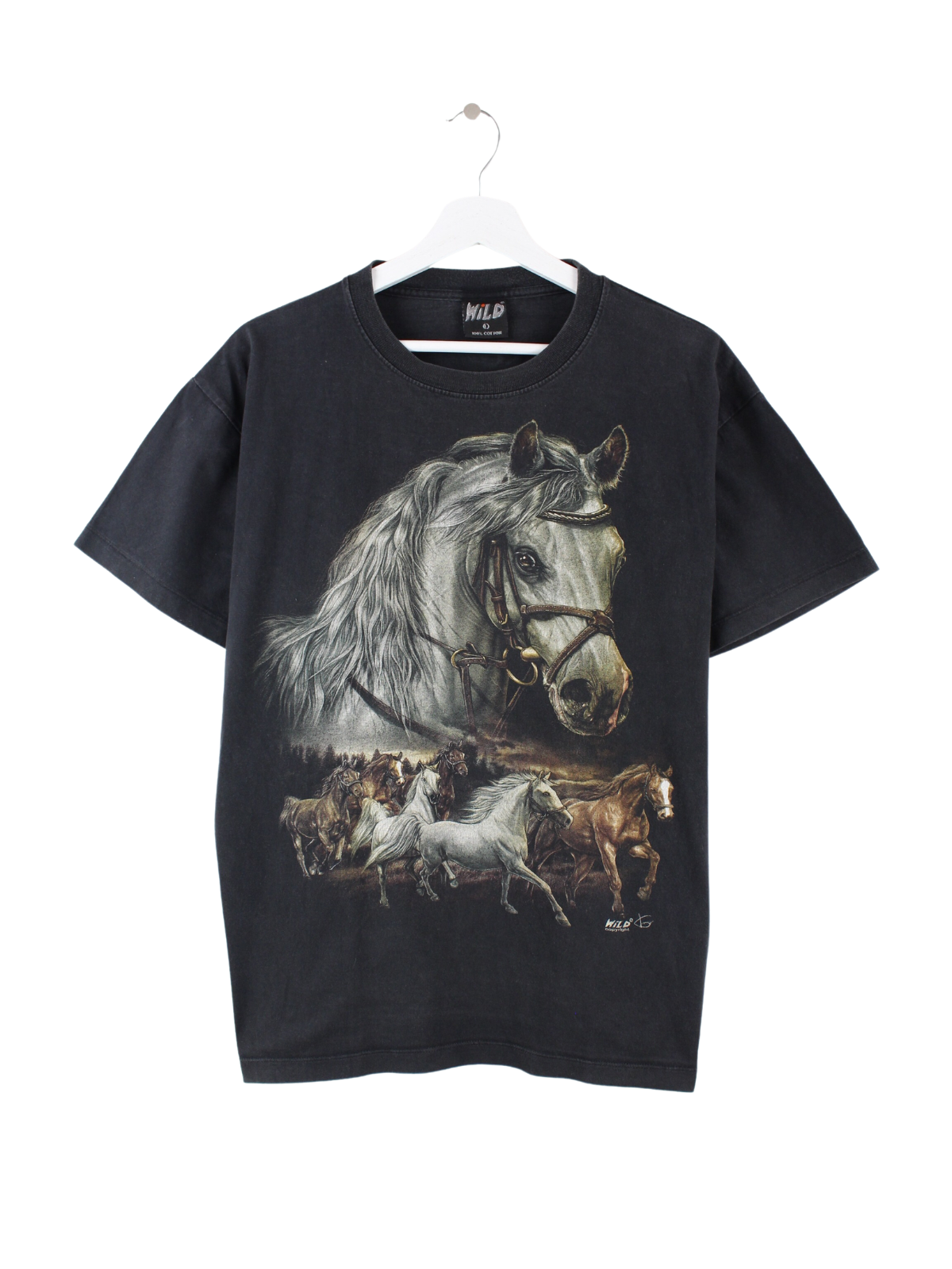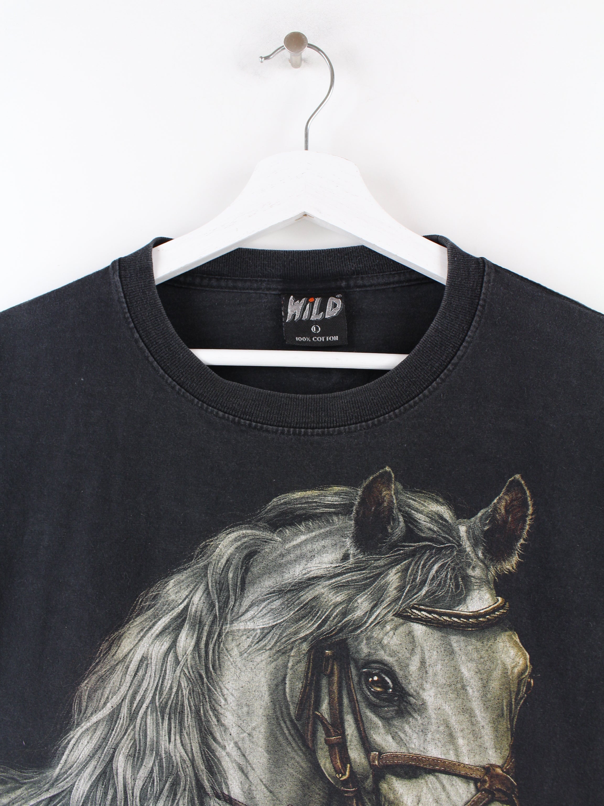 Vintage Pferde Print T-Shirt Schwarz L