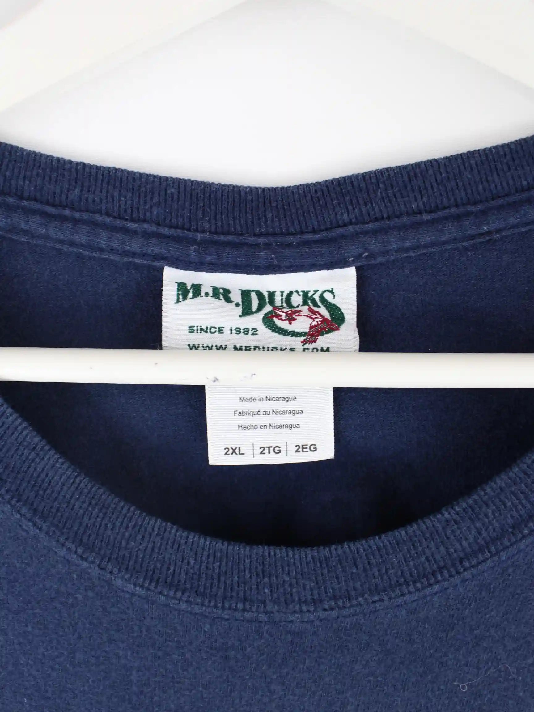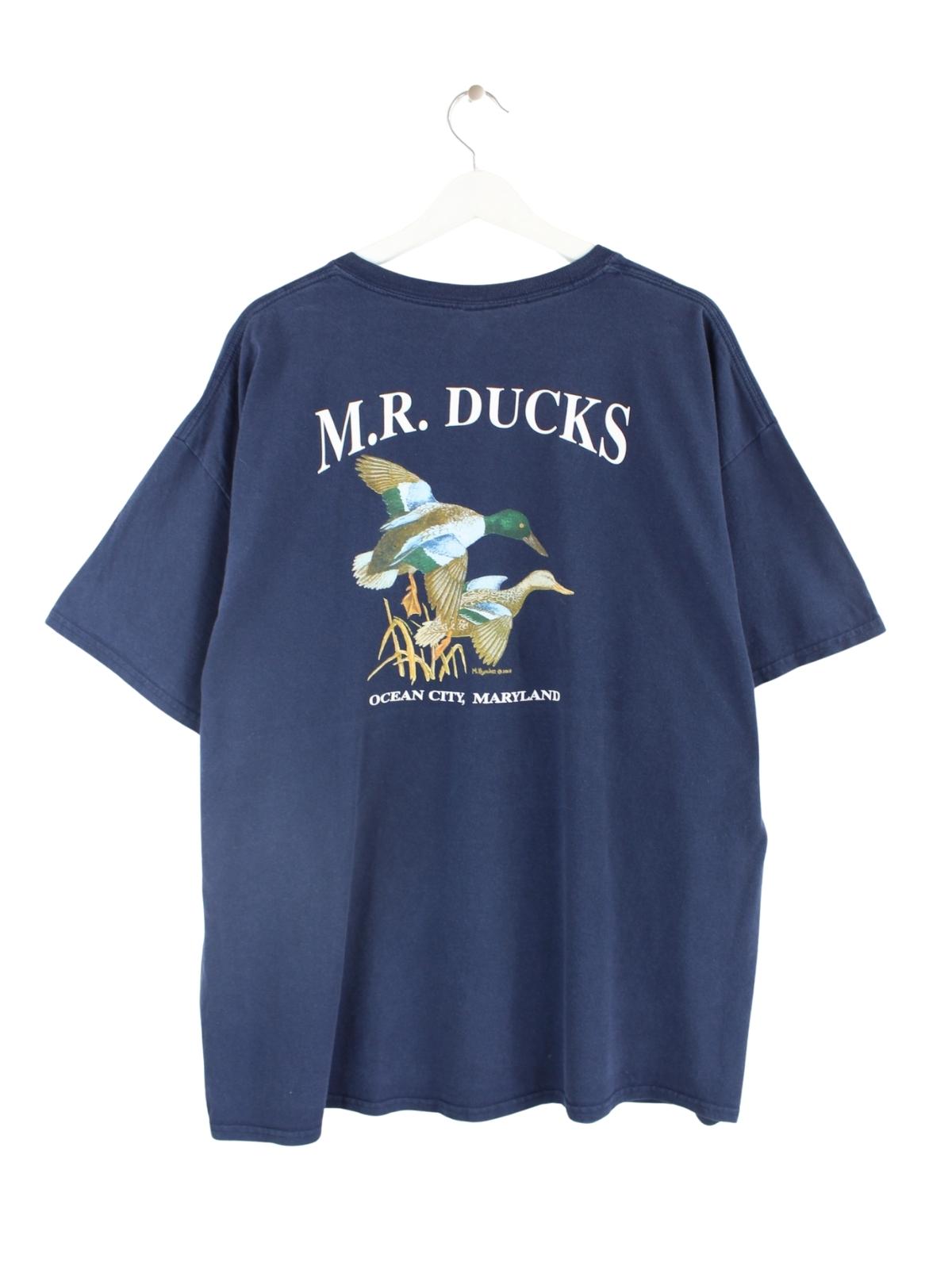 Vintage T-Shirt in Größe XXL. Es ist aus Baumwolle angefertigt und in Blau zu haben. Mit schickem Ducks Print.