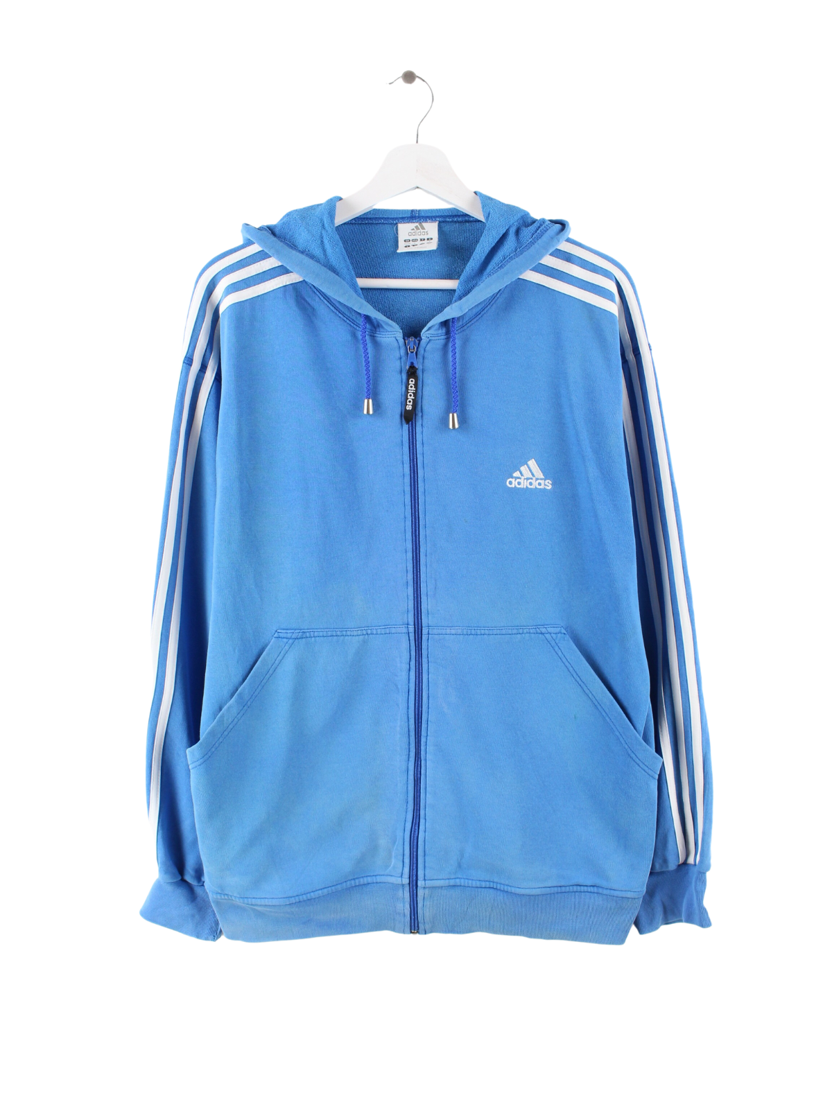 Blue zip hoodie, from the Adidas brand.