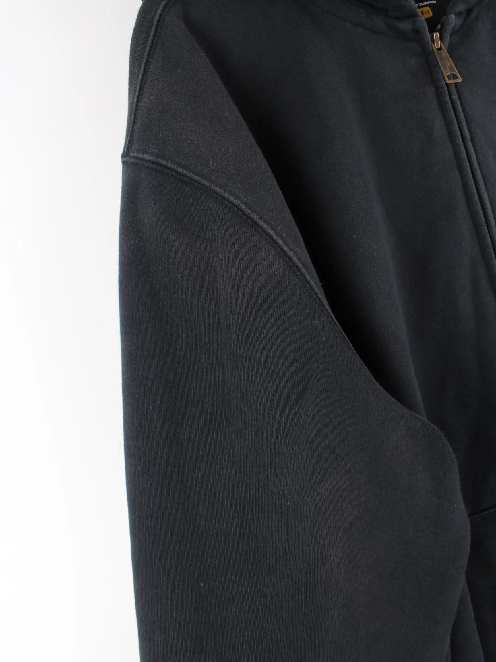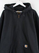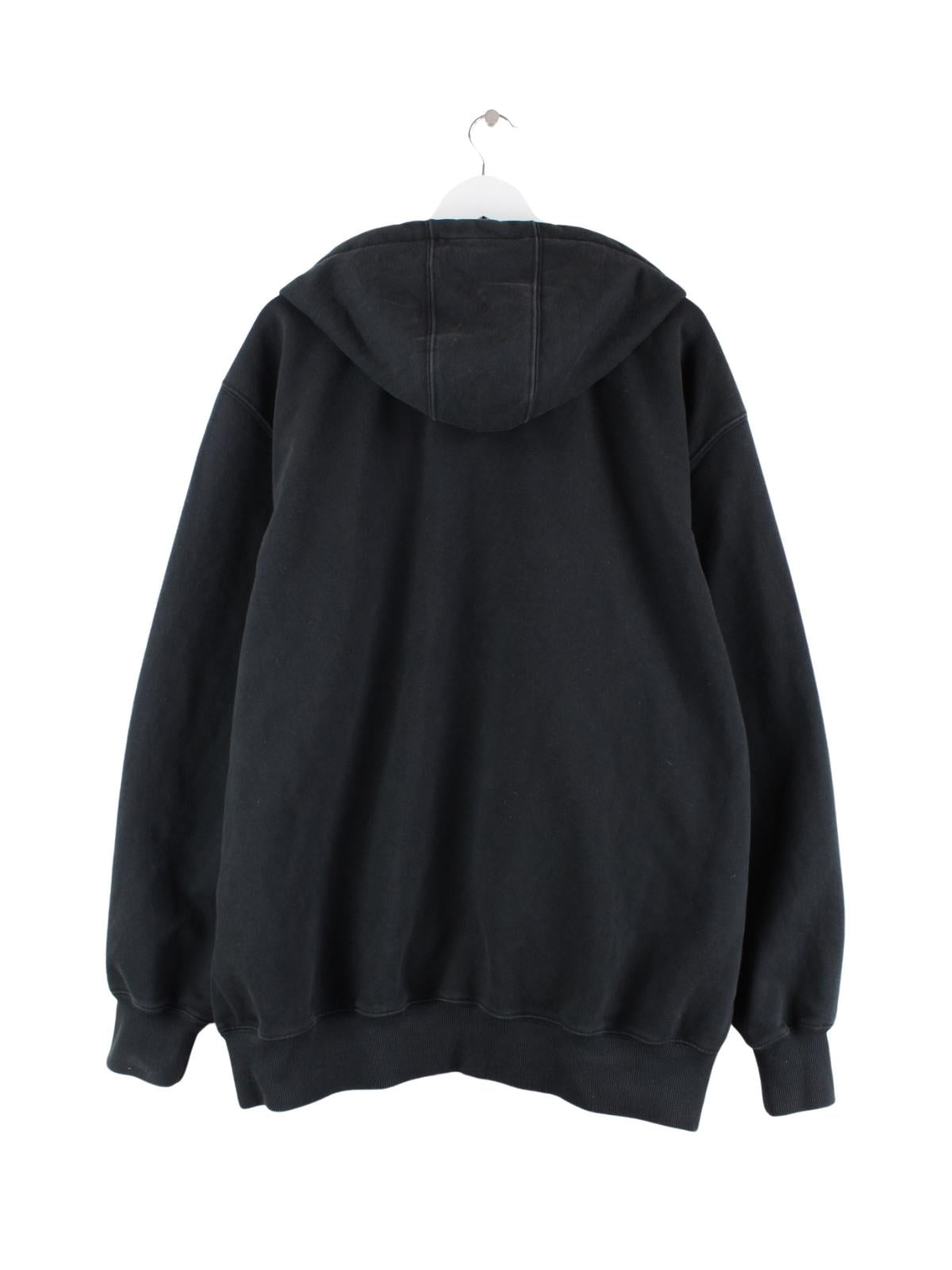 Schwarzer Hoodie mit durchgehendem Reißverschluß der Marke Carhartt in Größe XXL. Er ist aus einer Baumwollmischung produziert und in gutem Zustand zu haben.