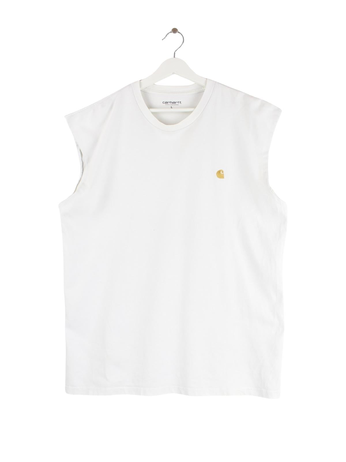 Weißer Tank Top der Brand Carhartt in Größe L. Er ist aus Baumwolle gefertigt und in gutem Zustand bei uns vorrätig.