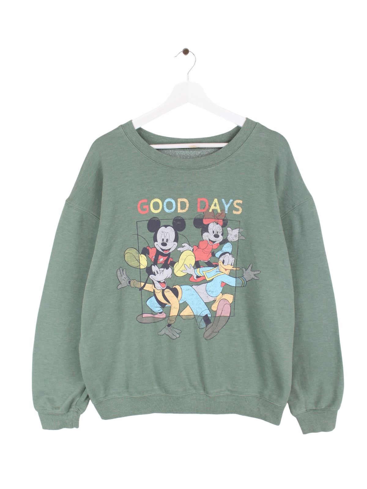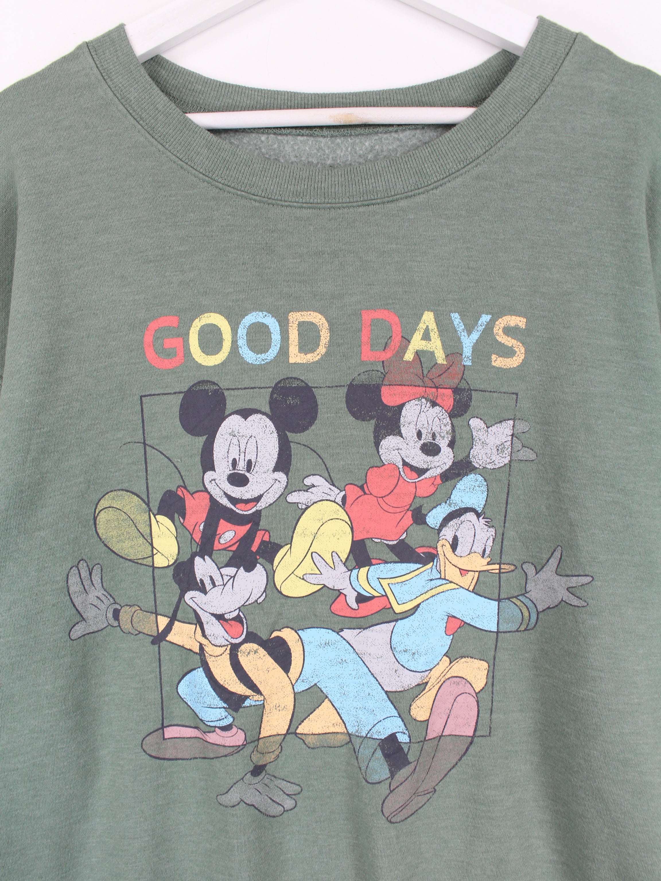 Green Disney women's sweater with a large print on the chest.