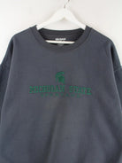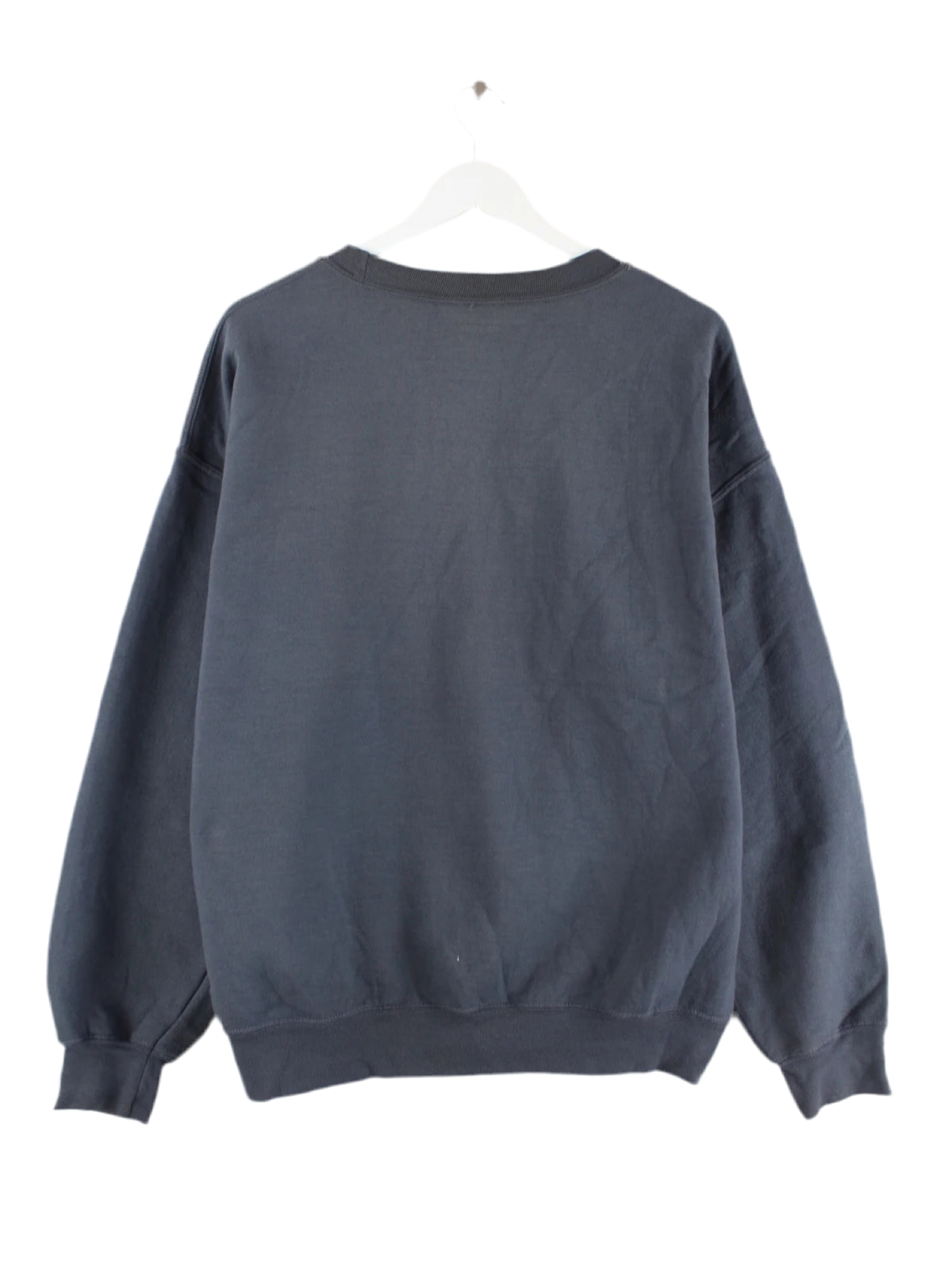 Sweater der Marke Gildan mit gestickten Motiven in Größe L. Er ist aus einer Baumwollmischung und in Grau auf Lager.