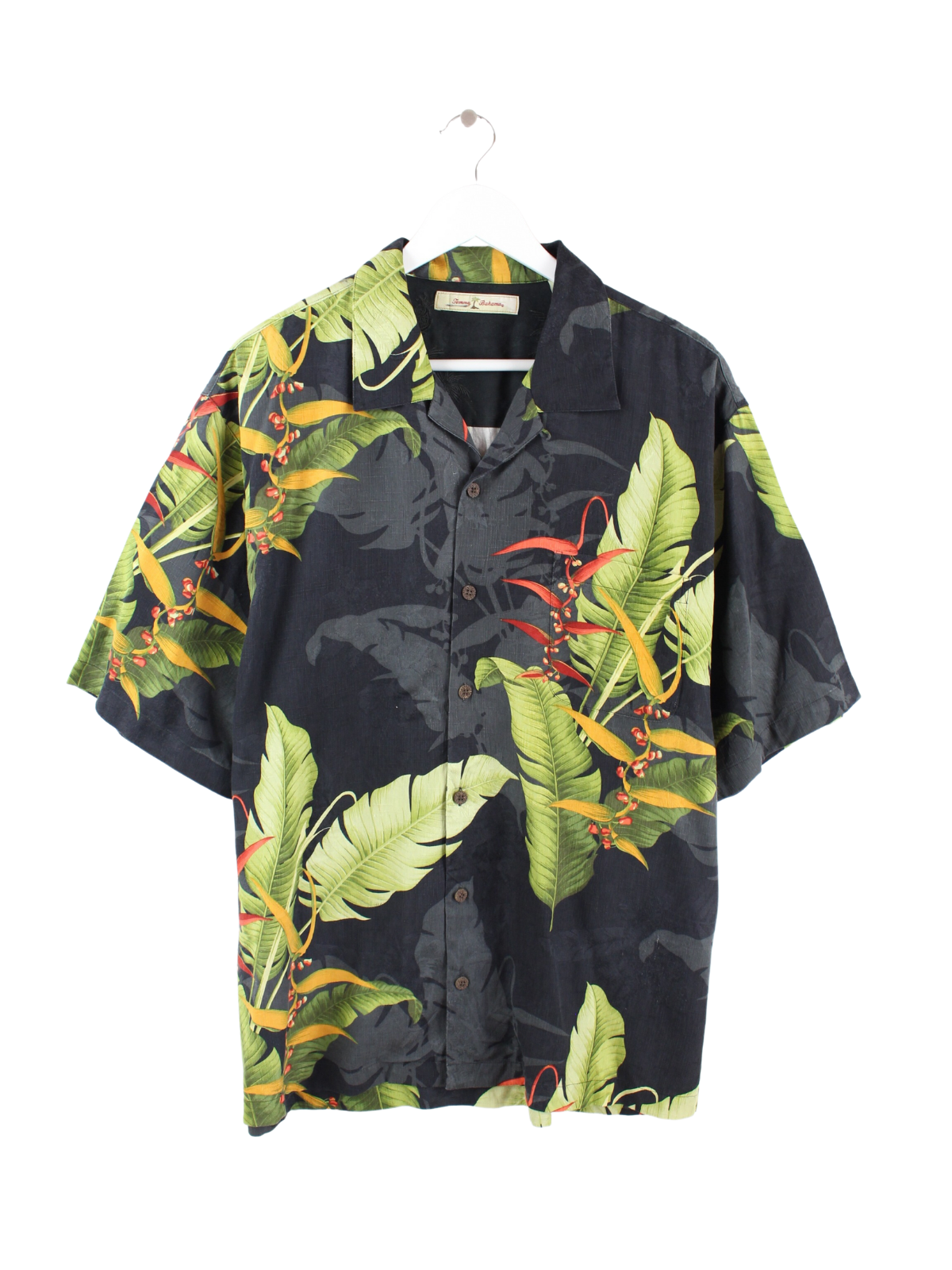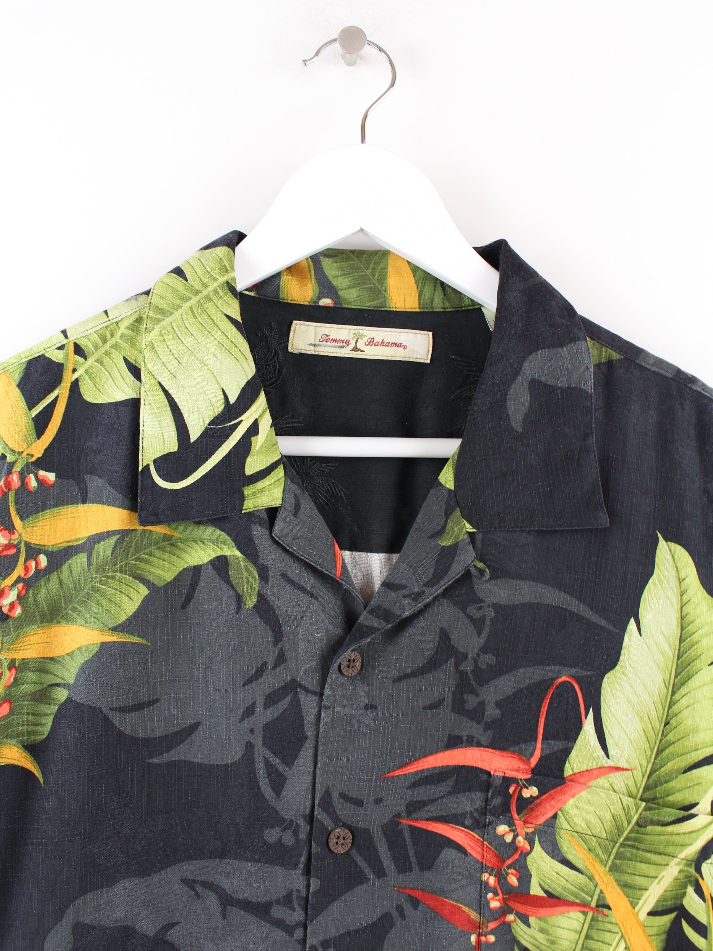 Tommy Bahama 100% Silk Hawaiian Shirt Black XL
