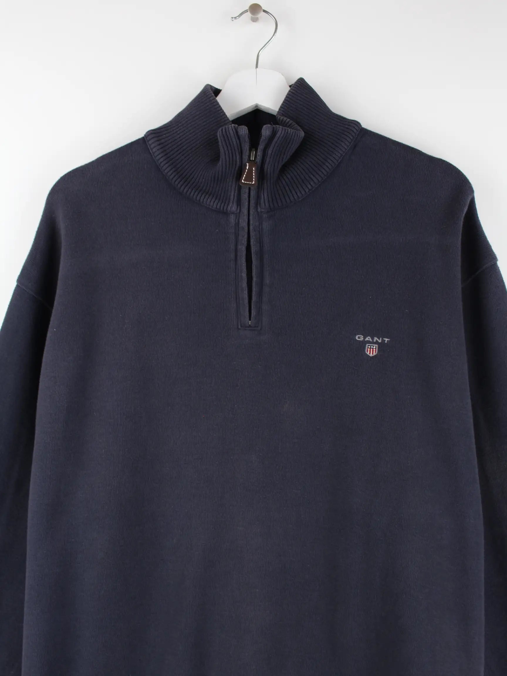 Quarter Zip Sweater der Marke Gant in Größe XXL. Er ist aus einer Baumwollmischung angefertigt und in Blau im Angebot.