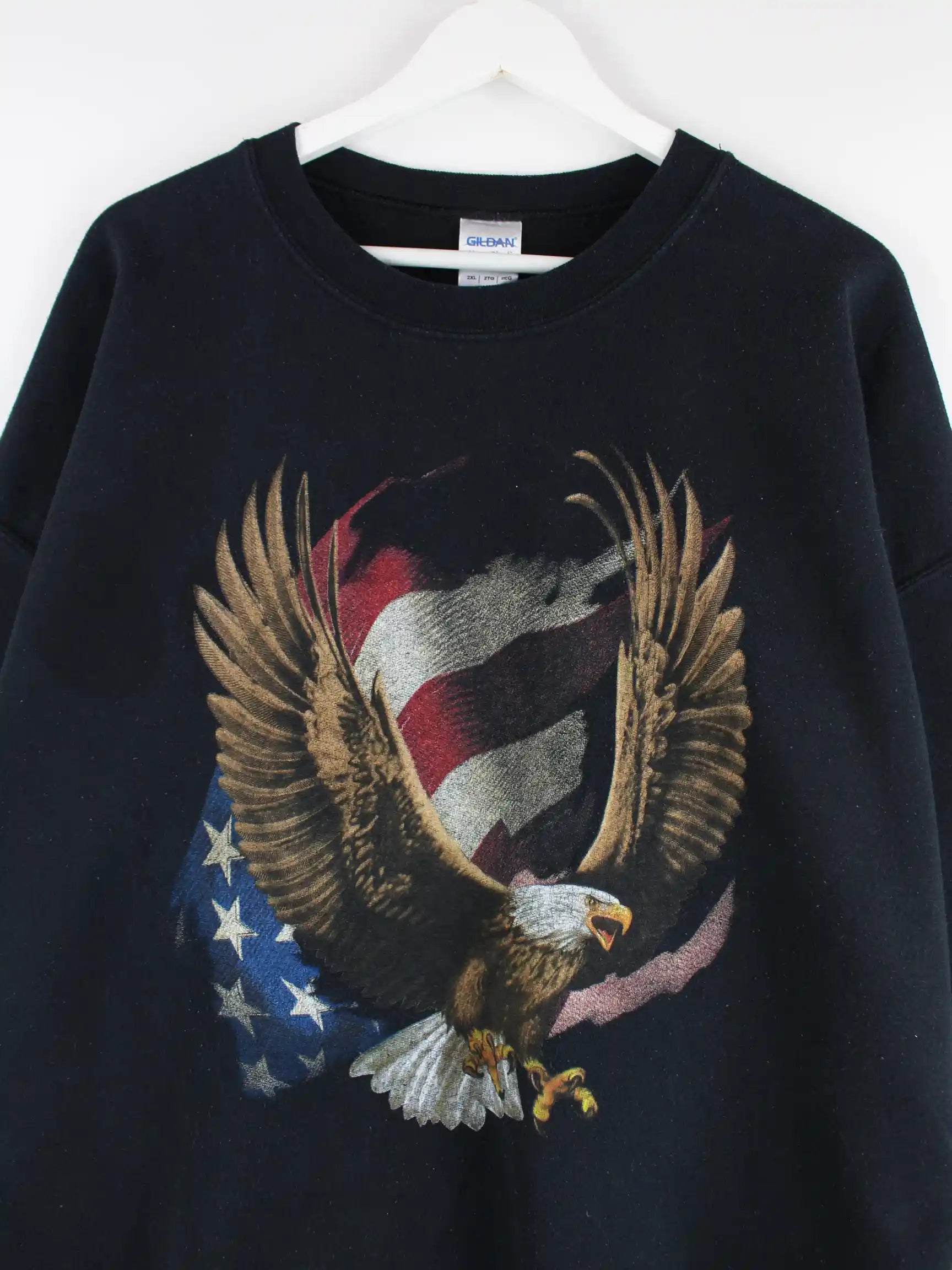 Schwarzer Sweater von Gildan in Größe XXL. Er ist aus einer Baumwollmischung gemacht und in gutem Zustand zu bekommen. Mit schönem USA Print.
