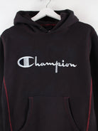 Lilafarbener Hoodie mit gestickten Motiven vom Label Champion in Größe L. Er ist aus einer Baumwollmischung angefertigt und in sehr gutem Zustand auf Lager.