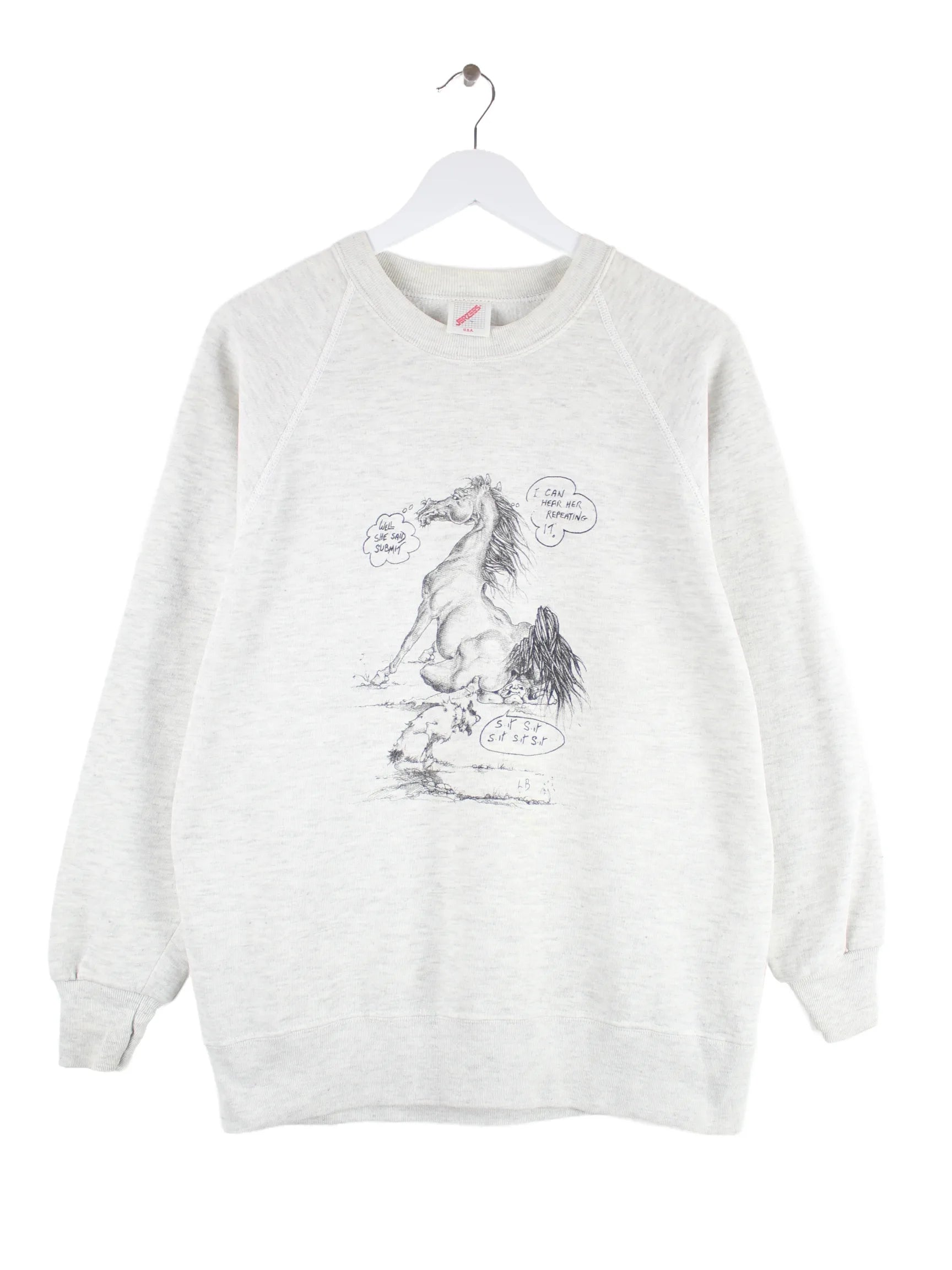 Jerzees Damen 90s Vintage Horse Print Sweater Grau L