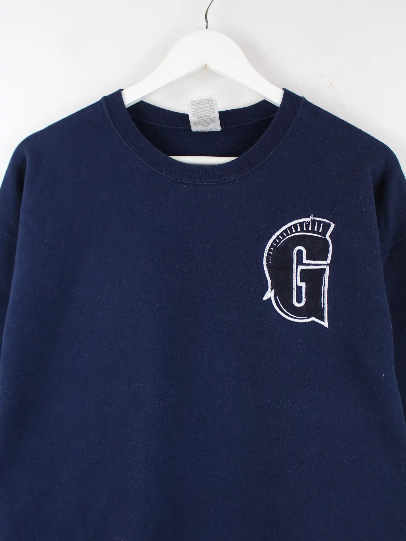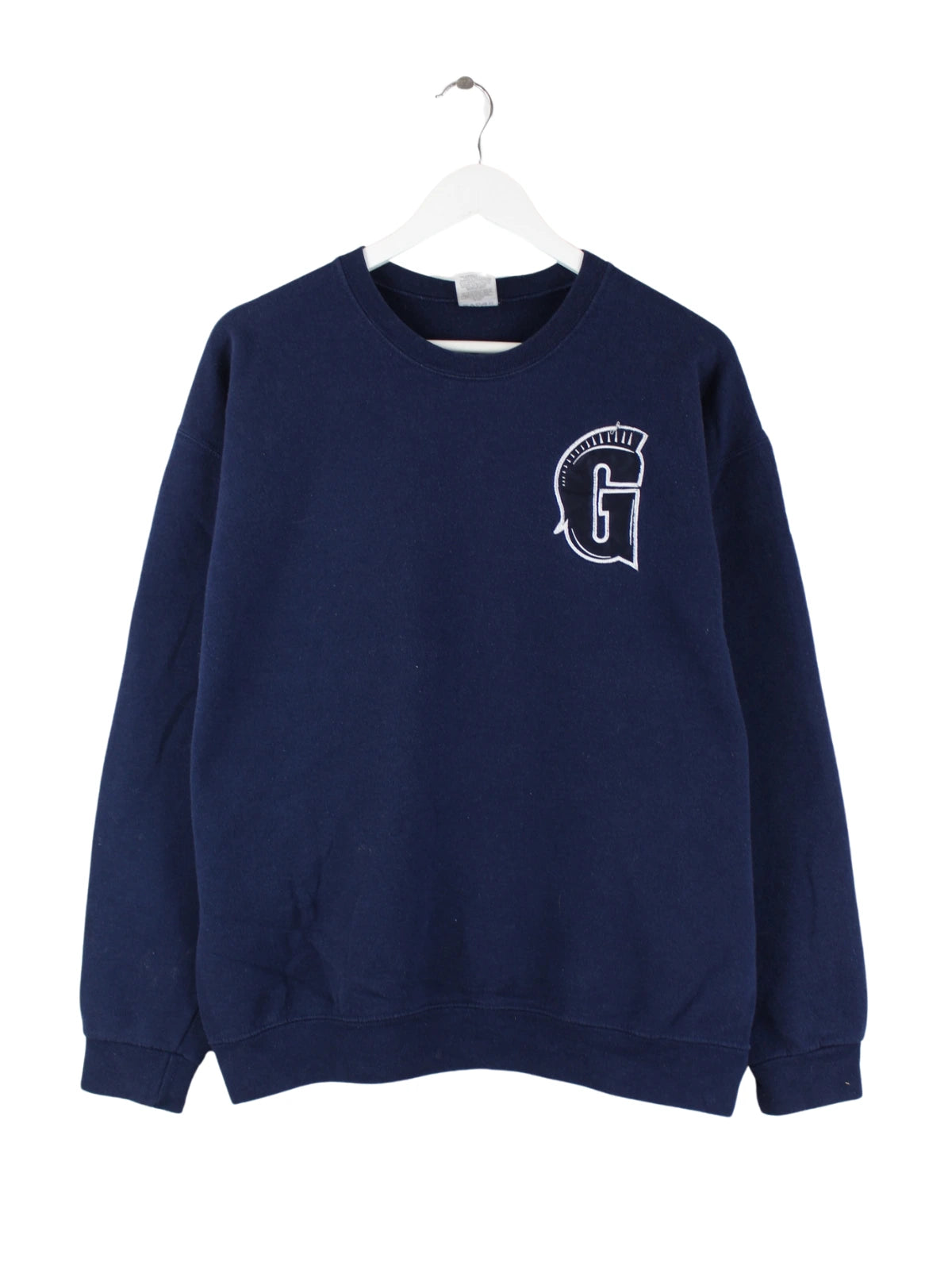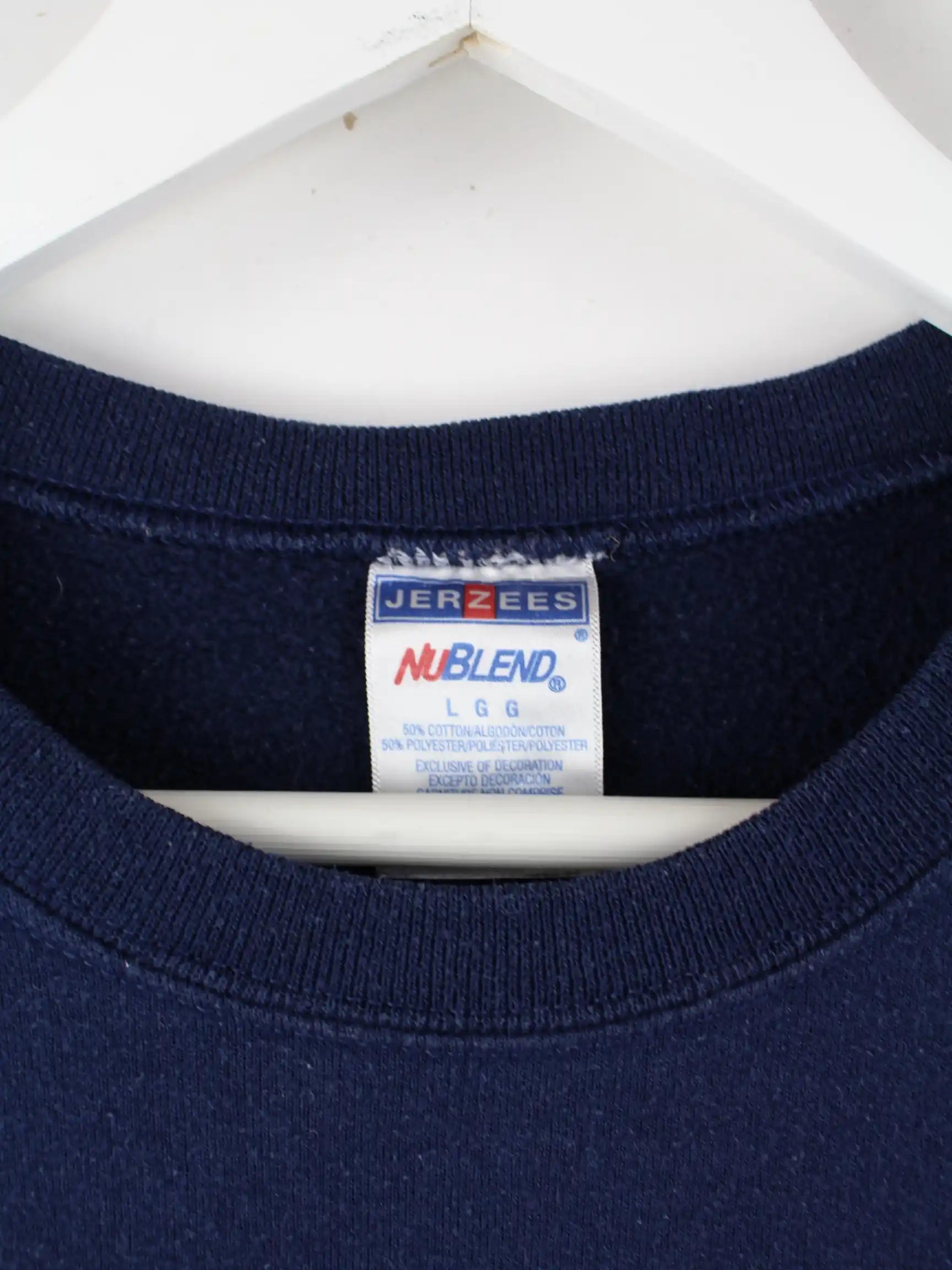 Sweater der Brand Jerzees mit Stick in Größe L. Er ist aus einer Baumwollmischung und in Blau im Bestand.