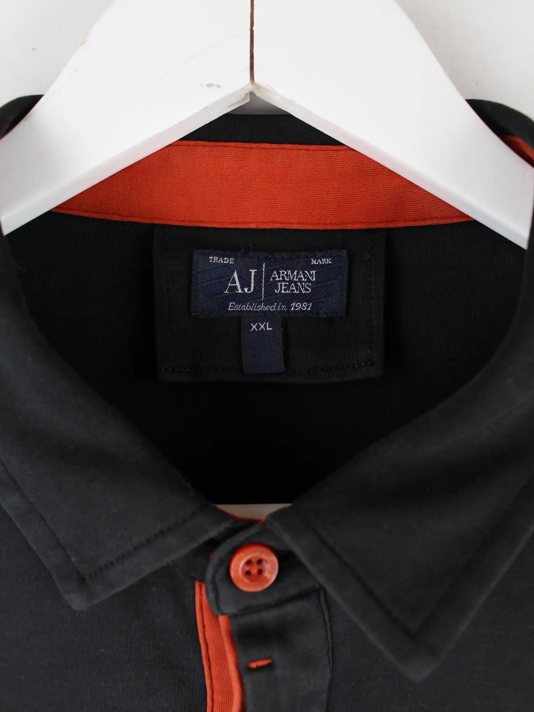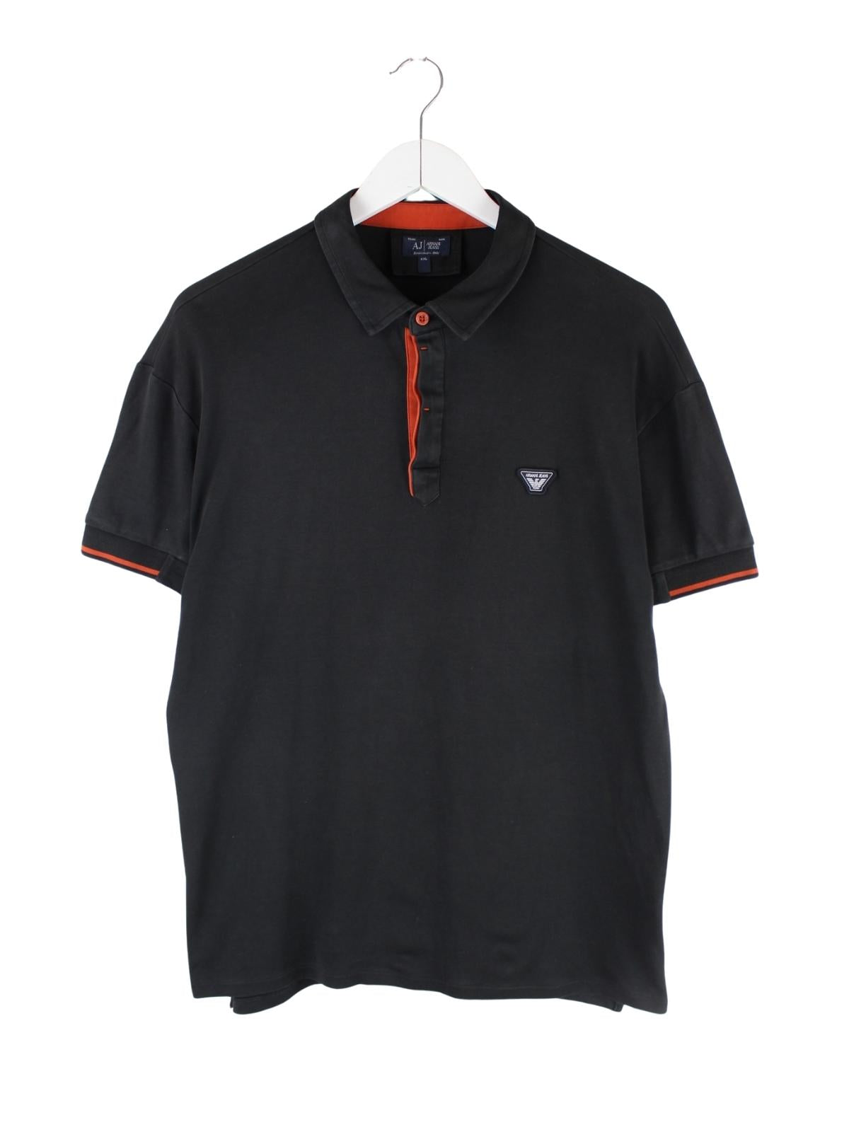 Poloshirt der Brand Armani in Größe L. Es ist aus einer Baumwollmischung gefertigt und in Schwarz im Angebot.